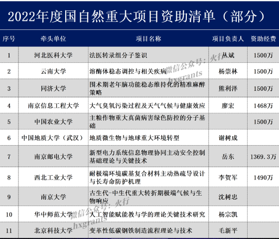 日前,国家自然科学基金委员会公布了 2022 年国家自然科学基金重大项目资助结果。