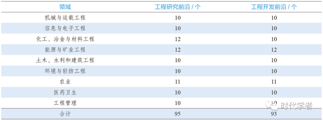 报告围绕机械与运载工程、信息与电子工程、化工冶金与材料工程、能源与矿业工程、土木水利与建筑工程、环境与轻纺工程、农业、医药卫生、工程管理9个领域,遴选出年度工程研究前沿95项和工程开发前沿93项。