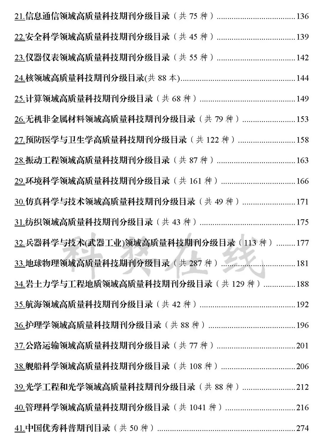 为深入贯彻落实习近平总书记关于办好一流学术期刊的重要指示精神,推动建设中外期刊同质等效的评价导向,助力我国科技期刊高质量发展,2019年以来,中国科协指导支持全国学会,分领域发布高质量期刊分级目录,为科技工作者发表论文和科研机构开展学术评价提供参考。2021年11月,中国科协发布了首批23个领域分级目录总汇,受到高等院校和科研机构等广泛关注。目前,又有18家学会完成了目录编制工作。为便于相关机构参阅,现对首版分级目录进行增补更新,汇总发布当前41个领域入编期刊名单,欢迎广大科技工作者和各界专家学者积极反馈意见建议,推动此项工作不断改进优化。由于学科间差异较大、工作进度不一,目前已发布的分级目录尚未覆盖全部学科,后续将根据进展情况持续进行增补和修订。