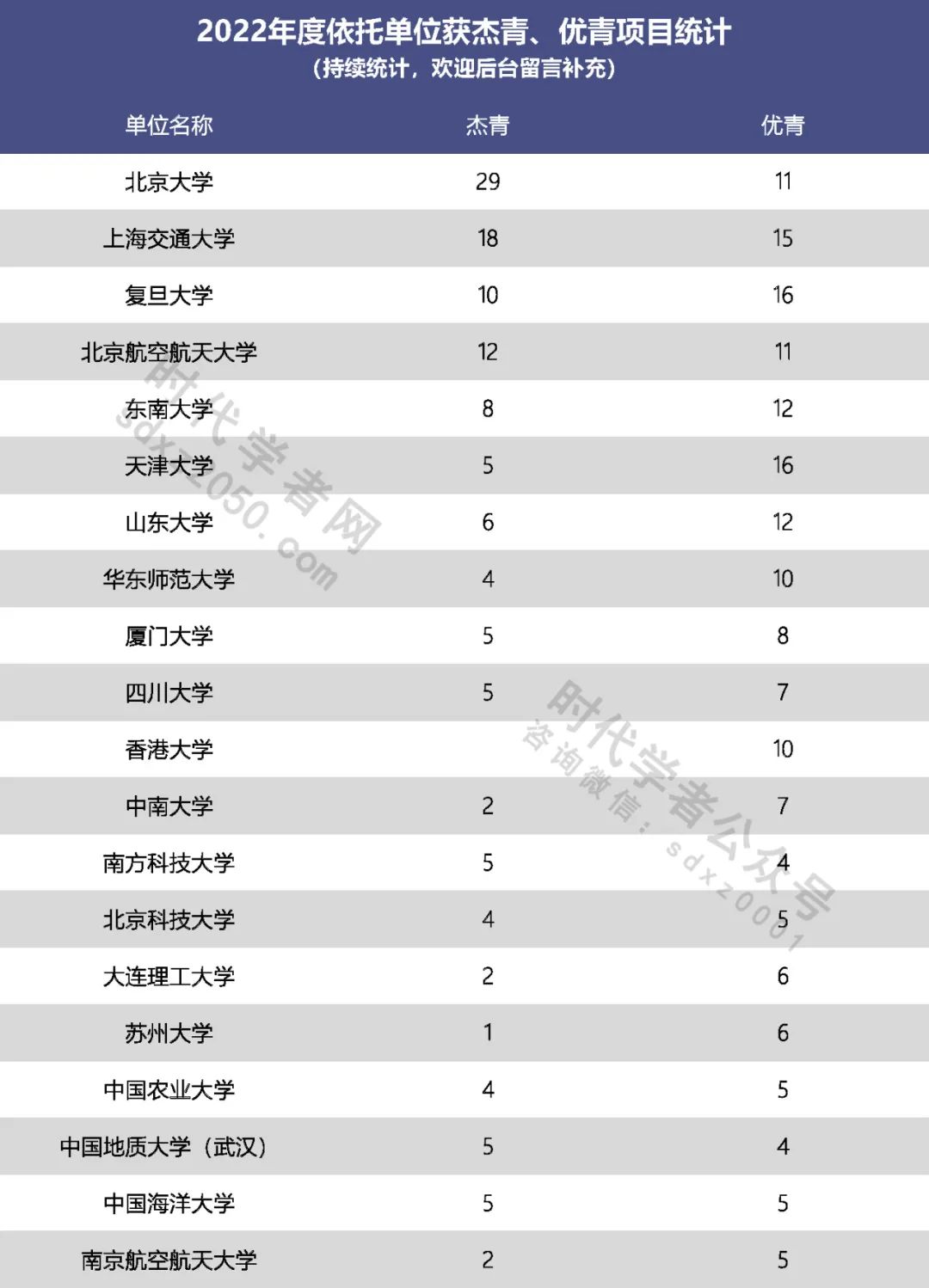 各依托单位获批国家杰青、优青不完全统计如下(来自公众号时代学者):