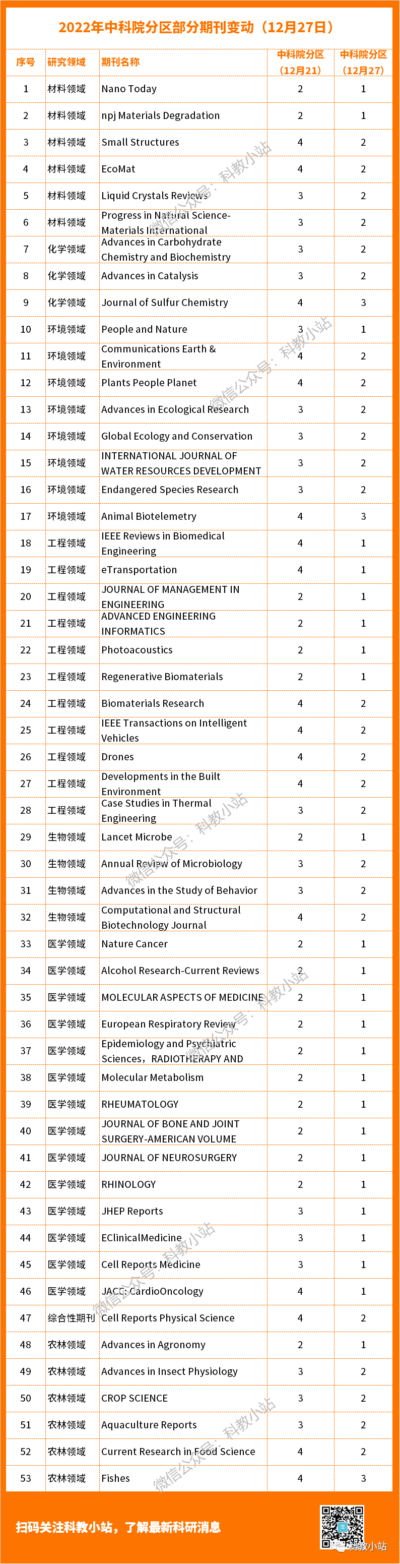 12月21日,2022年度中科院分区正式发布,科研人普遍都比较关注。毕竟,这个名单直接关乎学生毕业答辩、奖学金评定,还有教师的考核等,特别是年度总结就要来了。