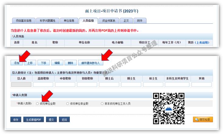 注意、注意、注意:青年项目,没有“参与人”,只有“申请人信息”!
