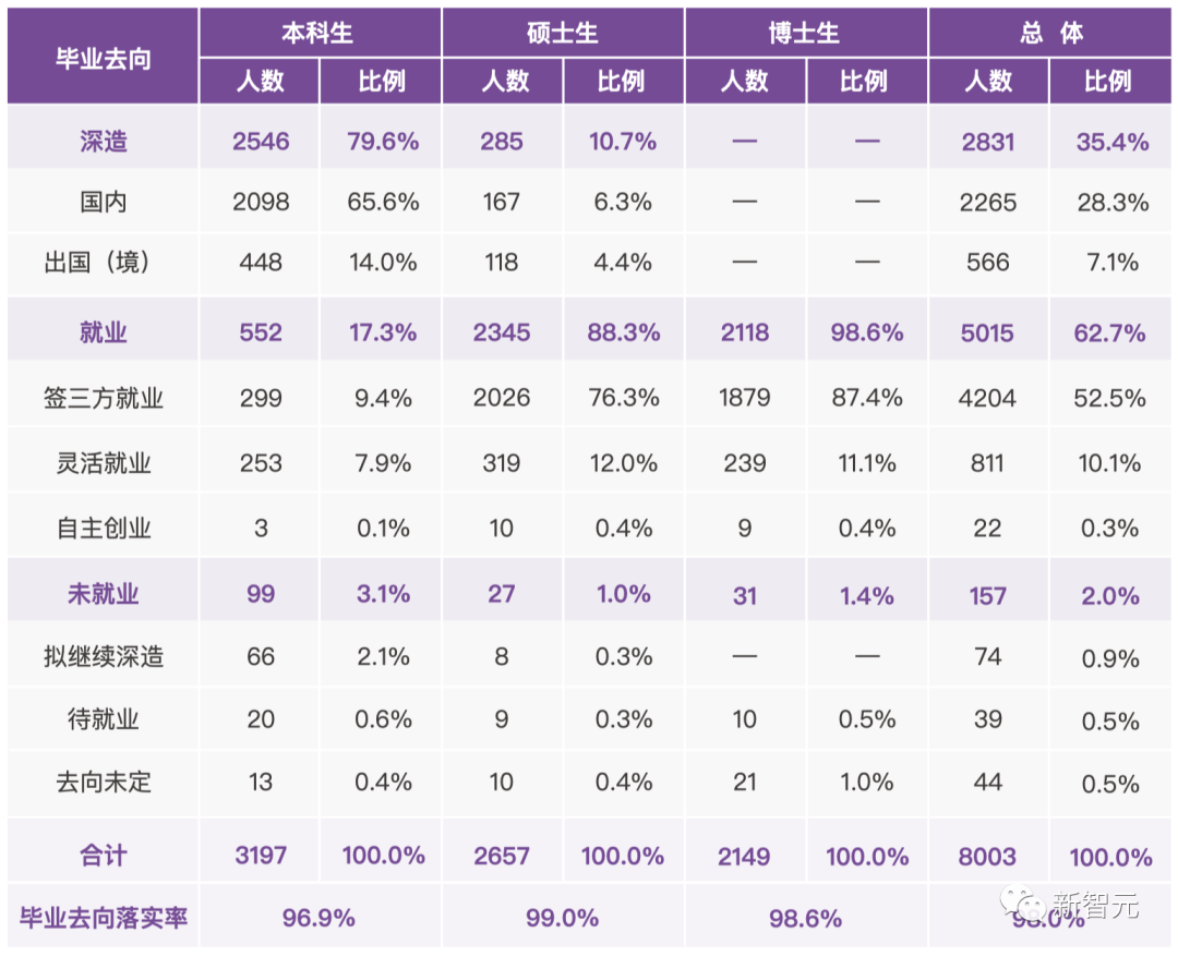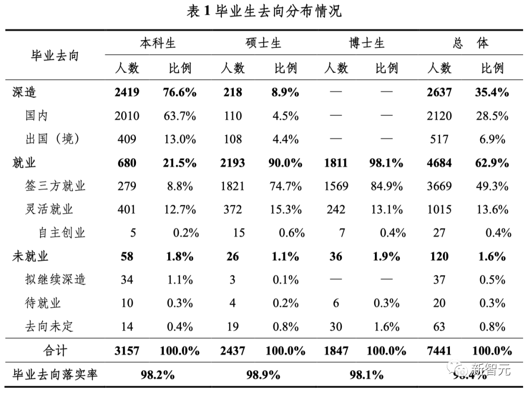 注1:深造包含国内深造和出国(境)深造;就业包含签三方协议就业和灵活就业两种形式。