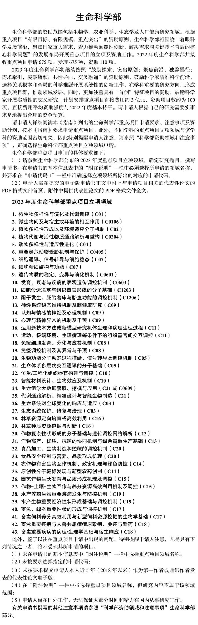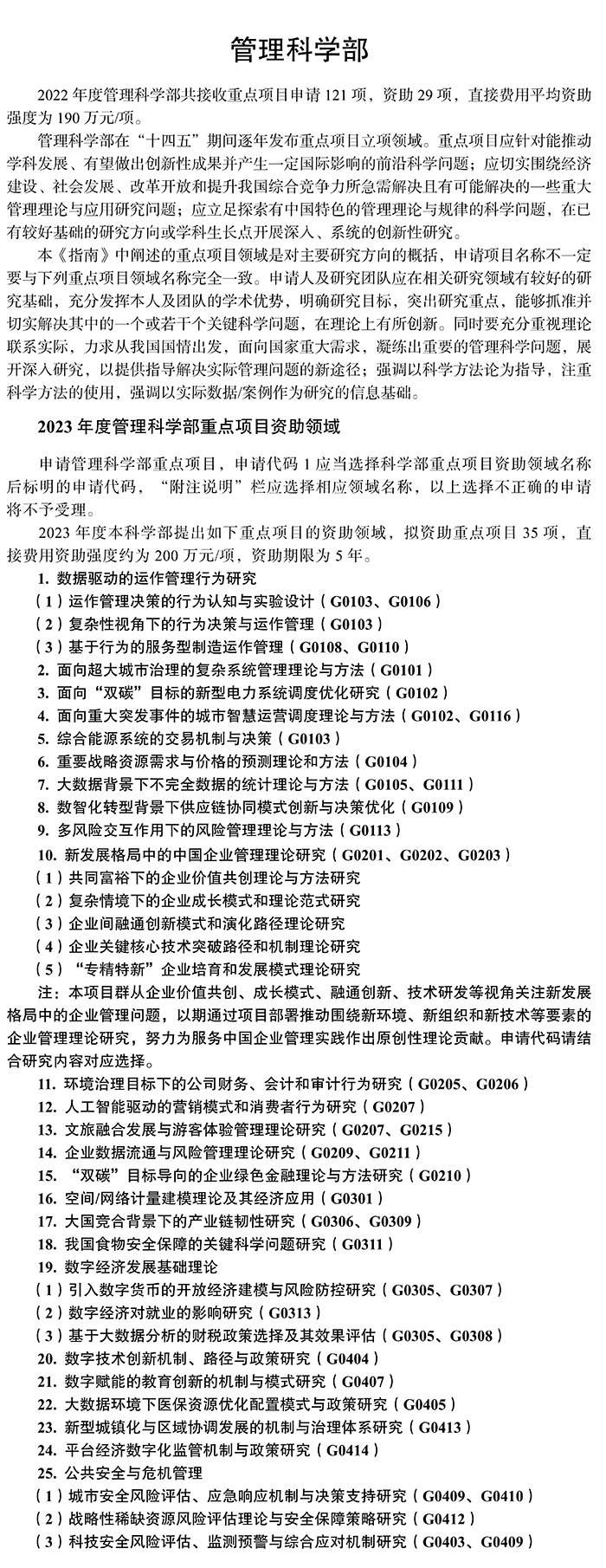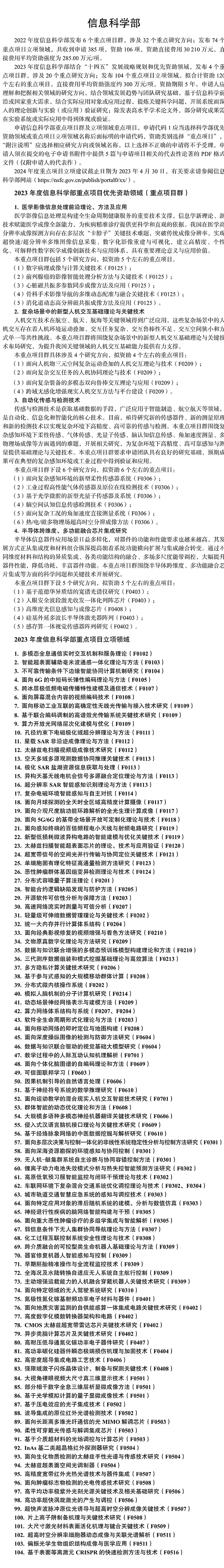 国家自然科学基金委2023年各学部重点项目优先资助领域