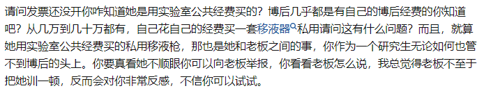 研究生吐槽同门博士后师姐引热议:她用经费私自买实验设备并归为己用