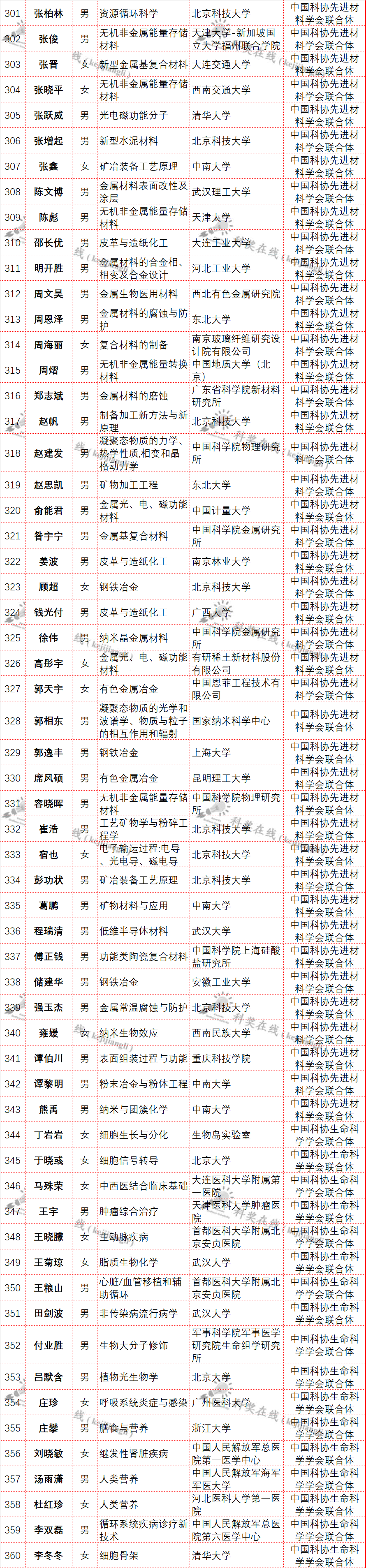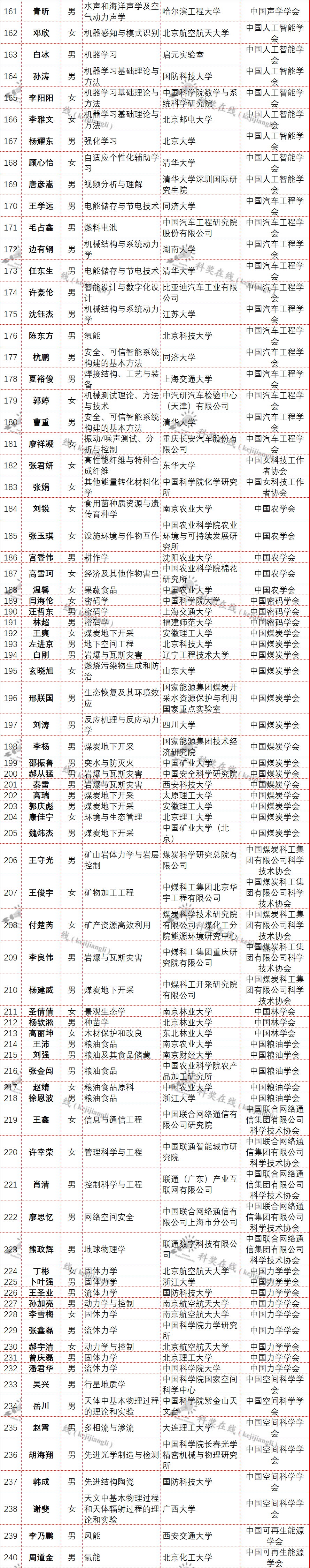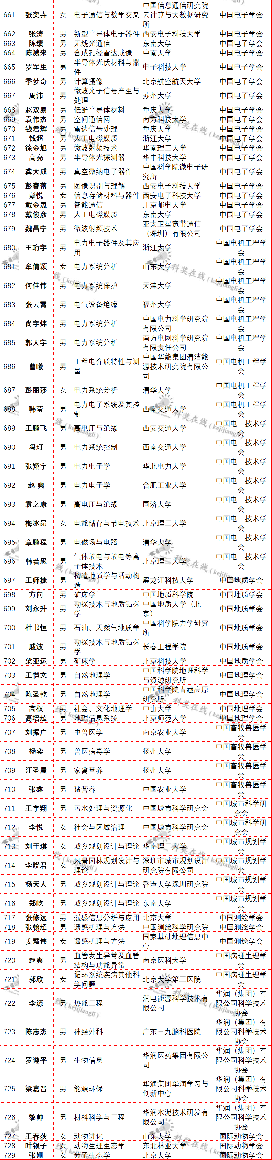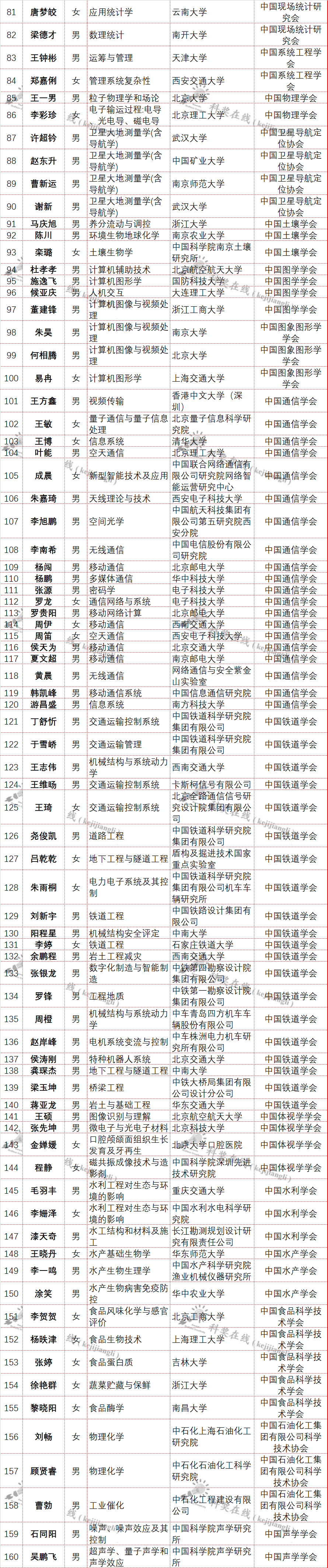 近日,中国科协公布了第八届“青年人才托举工程”入选名单,本届共有来自全国高校和科研单位的729名青年科技人才入选(不含特殊科技领域入选者)。