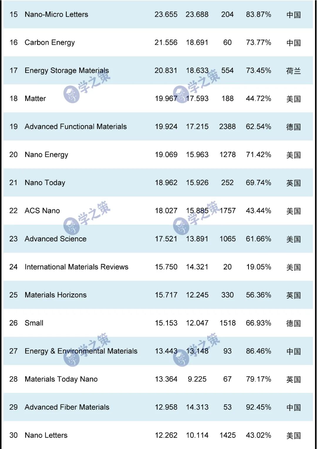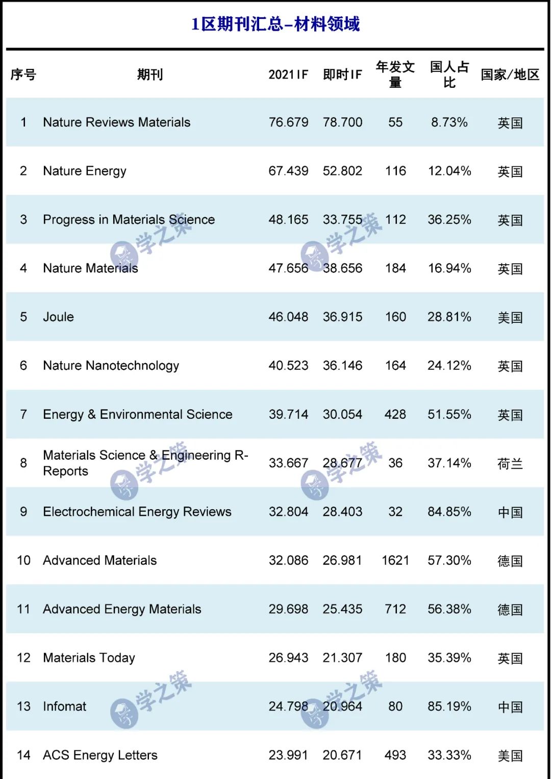 为了方便大家选刊投稿,本期我们整理了材料领域的1区期刊,其它领域陆续整理中。