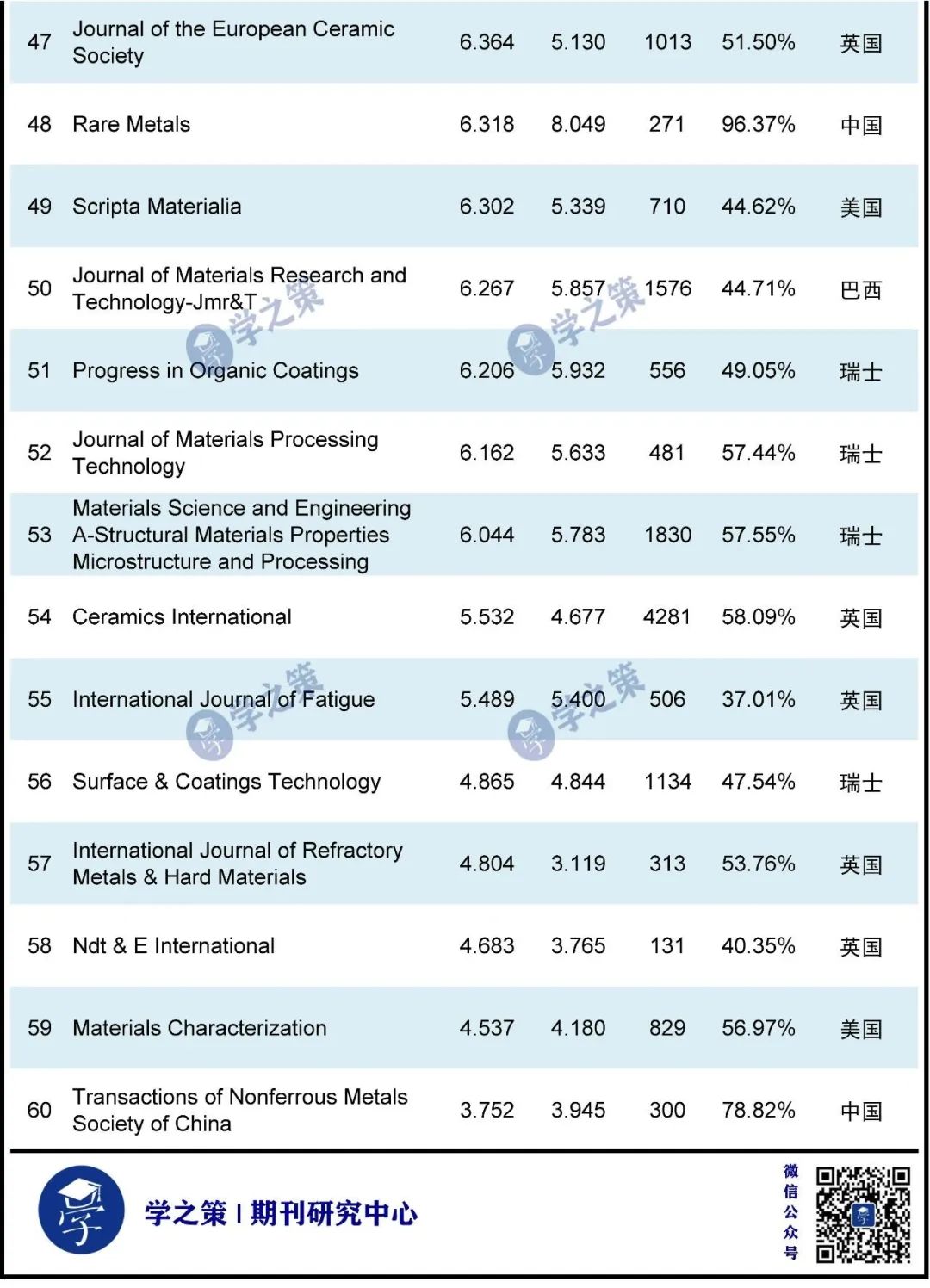 最新分区中,材料1区期刊共有60本,占整个材料期刊的14.7%。
