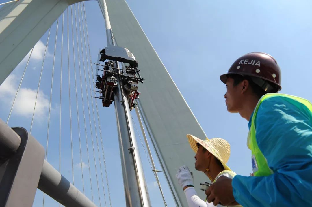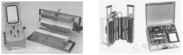 本文引言: 索桥现已成为大跨度桥梁的主要桥型,缆索结构体系是大跨径桥梁的主要承重构件,其安全性和耐久性对桥梁的正常使用和整体安全极为重要。 缆索结构体系是缆索承重桥梁的生命线,耐久性和安全性不足会导致桥梁病害产生与劣化,影响桥梁承载能力,最终导致公路桥梁垮塌的恶性事故,造成恶劣的社会影响和巨大的经济损失。 拉索体系的损伤主要有锈蚀、疲劳断丝、滑丝和断裂等几种,其检测与监测的技术也主要是针对上述损伤形式开展的。 下面分别就目前通用的几种检测方法做一个简单的介绍。 (图片与内容无关) 01 索体损伤检测技术 1.1 人工检测法 长期以来,人们对于大跨径桥的索体的检测主要采取人工检测,主要是检查索体是否腐蚀,各紧固件是否松动,定期对索体各部件涂刷防护漆,对已锈蚀的及时除锈,清查索腐蚀的钢丝数量,判断其腐蚀程度。 对于第三代缆索体系(PE防护拉索)目前多采用目测方法,先观测护套的表面,再根据索体表面的情况确定是否需要打开锚固区或在某些部位凿开护套,使钢丝外露以了解锈蚀、断丝等情况,在必要时对部分钢丝取样,并进行相关的物理和力学试验,以确定缆索的状态。 常规检测方法主要是根据拉索腐蚀的程度等级来提出是否需要更换此索,其依据建设部行业标准对缆索的安全性方面提出了定量的指标:以断丝面积2%或钢丝总面积损失10%作为索桥拉索是否需要换索的阈值;对于悬索桥吊杆的更换,则只规定对“需要更换者”,应进行力学分析、制定更换方案。 (桥梁梁缆索结构的常规检测) 1.2 磁漏检测法 无损检测对于构件锈蚀、裂纹等缺陷的检测其方法日趋成熟,在众多的无损检测方法中磁检测原理是最佳的无损检测方法之一。 而磁漏法是无损检测的主要手段,它通过测量被磁化的拉索表面泄露的磁场强度来判定缺陷的大小。 一旦拉索的表面有损伤或断丝,一部分磁场将从拉索中泄露出来,外泄的磁场可被传感器检测。 当拉索遇到里面或内部缺陷产生的材料间断时,磁力线将会发生聚集(畸变)从而引起可被检测的磁漏或磁场变化。 根据磁漏技术的特点,该技术用于斜拉桥拉索及悬索桥吊索在锚固区外的部分的钢丝锈蚀、断丝等检测是可行的,但对锚固区内的检测将难以进行。 (钢丝绳的商业化漏磁检测仪器) 1.3 放射线检测法 采用放射线法可以探测索体的多种损伤,射线主要包括X射线和γ射线,放射线法可以检测索体内部损伤和缺陷。 X射线的检测原理是:当射线通过被检测物体时,有缺陷部位与无缺陷部位对射线吸收能力不同,一般情况是透过有缺陷部位的射线强度高于无缺陷部位射线强度,因而可以通过检测透过被检物体后的射线强度的差异,来判断被检物体中是否存在缺陷。 放射法不仅可以检测损伤的存在,还可以以三维空间坐标定位损伤。 射线检测装置主要由射线源、胶片和摄相装置组成,为了屏蔽对人体的辐射,射线装置往往比较大,但携带式X射线装置可以用于现场拉索的损伤检测。 表面的缺陷也会对底片上的图像有影响,但通过现场对表面缺陷的观察,可以剔除图像上表面的缺陷,较准确地得到索体及锚头内部的断丝以及滑丝等损伤情况。 1.4超声波测试检测 美日等国曾在上世纪末对采用超声波检测斜拉索锚固区内的钢丝断裂的技术进行了研究,并应用于美国Cochrane桥。 图3所示为在实桥采用超声波检测斜拉索锚固区内钢丝断裂的情况。 据报道,当频率在5~10MHz时,超声波可检测锚固区2~5m长度内缆索的断丝。显然这项测试技术不失为一种选择,但在检测斜拉桥拉索及锚固系统和悬索桥吊索系统时要使结果理想必须事先进行严格标定,尽管理论上可测定索的非规则性和断面损失,但实践中还有较大困难; 另一方面,超声波测试技术对锚固区外缆索的检测仍有较大难度。 (采用超声波检测Cochrane桥拉索锚固区内的钢丝 1.5 磁伸传感技术检测法 磁伸传感技术采用两个磁伸传感器进行测试,其中一个作为发射器,另一个作为接收器,两者均由一个线圈和一个偏磁场构成。 磁伸技术可用于缆索的断丝、锈蚀和其它原因引起的断面损失的检测。 国外已对49丝拉索进行过试验研究,证实了其有效性。 对长为100m,直径F15mm的钢铰线进行的试验表明磁伸传感可检测2%以上的断面损失。 但与磁漏传感技术相似对锚固区内的检测仍不易进行。 (缆索检测的磁伸传感技术示意图) 1.6 电反射技术 电反射技术(包括电时域反射/ETDR和电频域反射技术/EFDR),电时域反射系统又称为“闭环”雷达,并在输电线的检测中广为应用,同时在岩土工程中亦有应用。 电时域反射系统的工作原理是:系统对电缆发送高频电脉冲,电缆沿线阻抗的非连续和非匹配将会反射部分脉冲,而系统可将对该反射脉冲进行记录,并根据阻抗的变化情况分析电缆沿线材料的物理特性。 电频域反射技术将反射信号在频域进行处理,其分析比时域结果将更为简洁和明确,并更易除去噪声的影响。 对斜拉桥拉索及悬索桥吊索进行检测时,电反射系统可利用缆索本身的钢铰线或平行钢丝索作为电缆,同时并行其布置另一条附件的电缆作为地线。 (缆索电反射检测技术示意图) 此外无损检测还有磁弹性传感器技术;脉冲涡电流技术;非线性声振技术;聚能探地雷达技术等。 但这众多的检测技术使用起来都有各自的工况和使用条件,就缆索检测的工况和使用