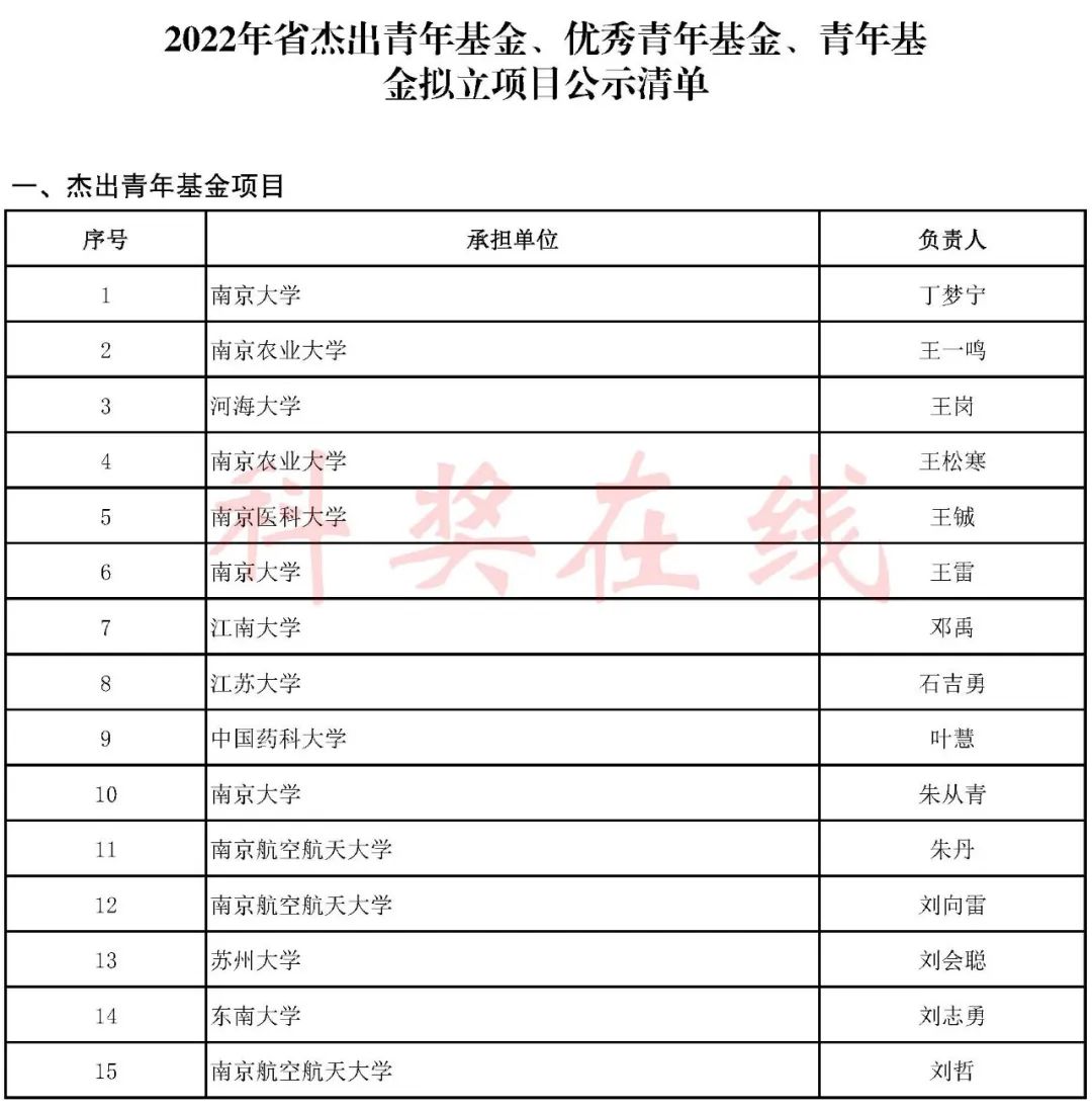 杰青、优青基金是国家及各省市为促进青年科学和技术人才的成长,加速培养造就一批进入世界科技前沿的优秀学术带头人而特别设立的科学基金,是各个科研单位竞相争夺的青年科技人才。截止到目前,除了国家基金委公布了2022年国家杰青优青立项信息外,部分省市公布了省级杰青(962项)优青(413项)项目清单,具体如下: