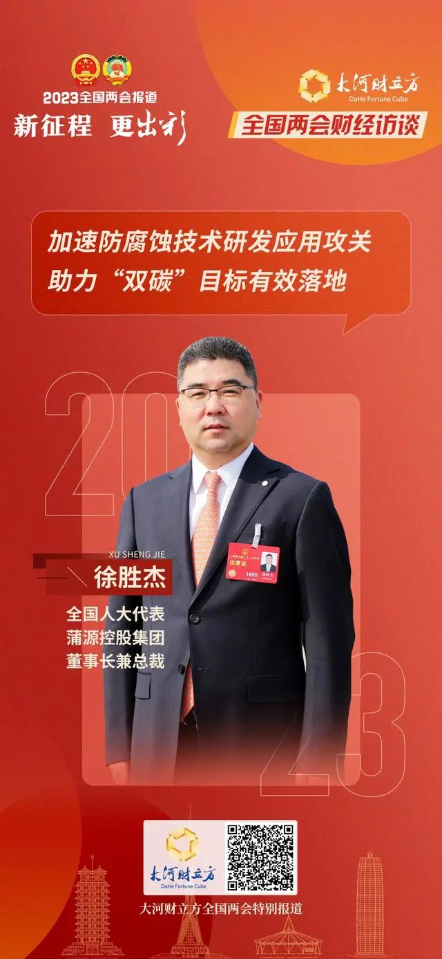 中国作为“基建大国”,防腐蚀技术在重大民生工程项目中发挥着关键作用。推进防腐蚀技术进步,不仅有助于延长工程项目使用寿命,而且对于推进绿色产业及循环经济发展有着重要意义。作为一名优秀的民营企业家,全国人大代表、蒲源控股集团有限公司董事长兼总裁徐胜杰对产业发展有着很深的理解。本次全国两会,他将目光放在了推动防腐蚀产业发展上面。2023年全国两会期间,徐胜杰在接受记者采访时表示,本次全国两会他带来了《建设国家防腐蚀技术研发中心和产学研用基地,推动发展绿色转型》的建议。据他介绍,腐蚀是人类社会日常生活和工业生产中广泛存在的问题,一方面造成巨大的经济损失和资源浪费,另一方面极易引发安全、环境污染等重大事故。数据显示,全世界每年因腐蚀造成的经济损失高达1万亿美元,占各国国民生产总值的2%~4%。我国每年因腐蚀造成的各种损失超2万亿元,如果采取科学的防腐蚀技术和有效的措施,每年可将相关损失降低至少30%,即相当于节约6000万吨标准煤的能源消耗。“当前,我国防腐蚀产业的发展还存在许多问题。如技术研发及实际应用瓶颈亟待打破,产业发展受限严重。我国防腐蚀行业技术基础比较薄弱,存在人才队伍素质不高、技术研发能力欠缺、技术转化及应用能力不足、产学研用未形成闭环链条等问题。”徐胜杰说,尤其是国内防腐蚀材料研发和技术应用,同国际水平相比还有一定差距。