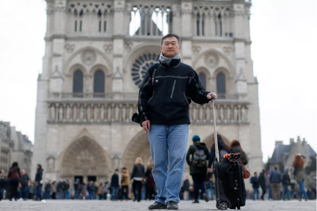 值得一提的是,许教授曾在 2015 年被记者拍下一张照片;当时的他意气风发地站在巴黎圣母院前,肩上挂着他「公费购买」的相机。