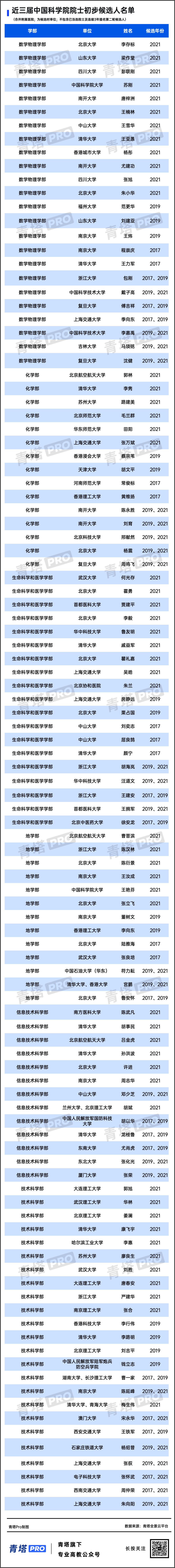 材料学网也分别按学部梳理了近三届两院院士候选人的全名单,供大家参考。