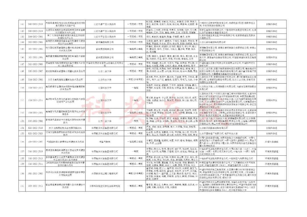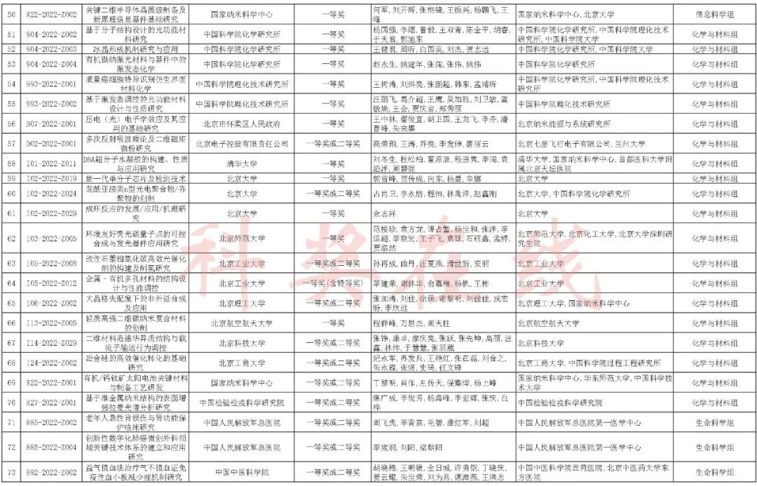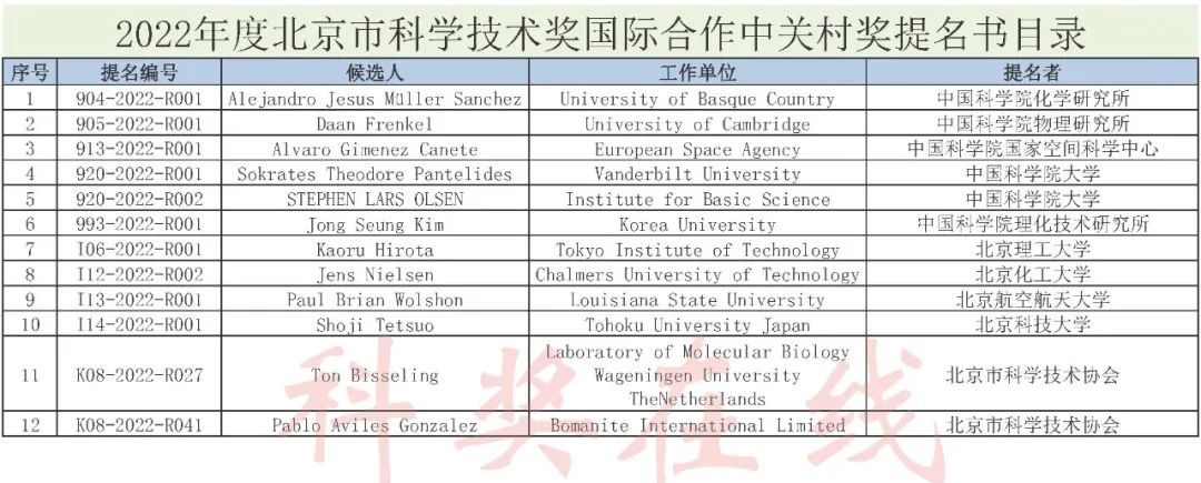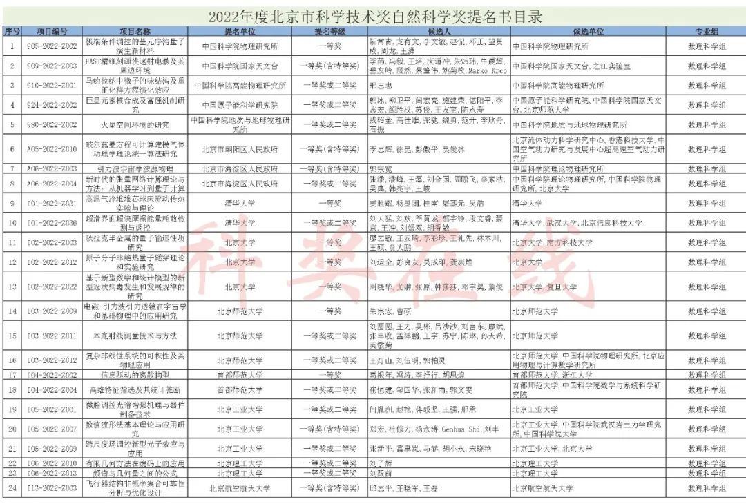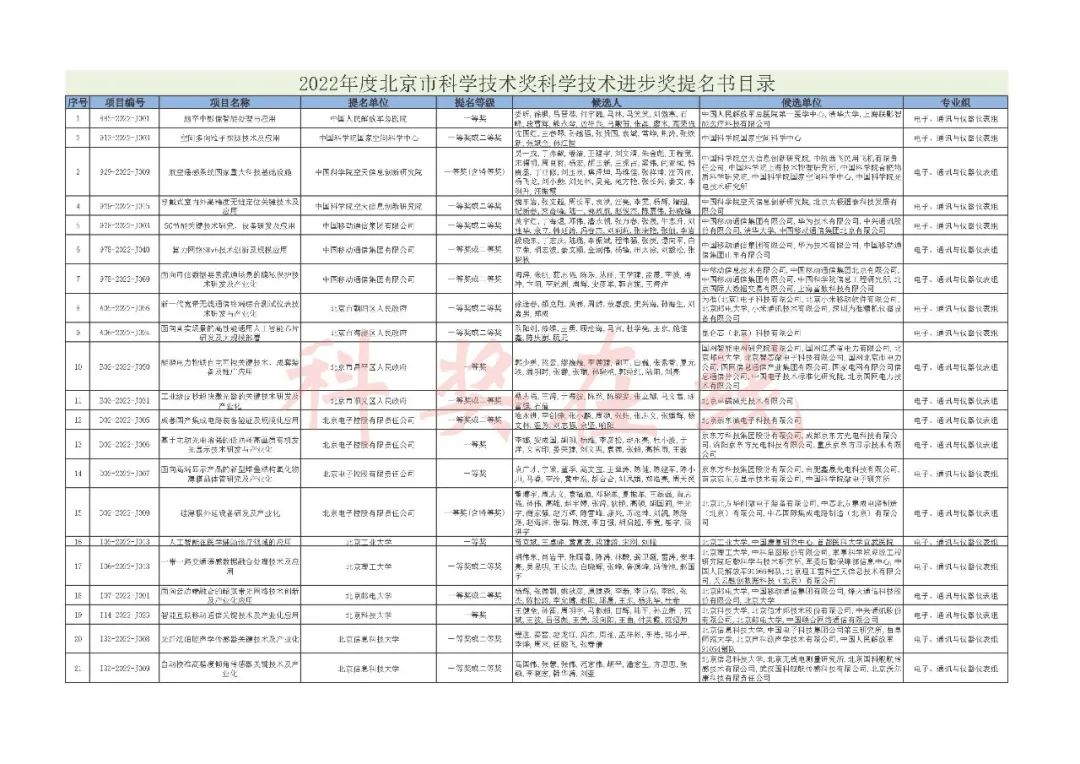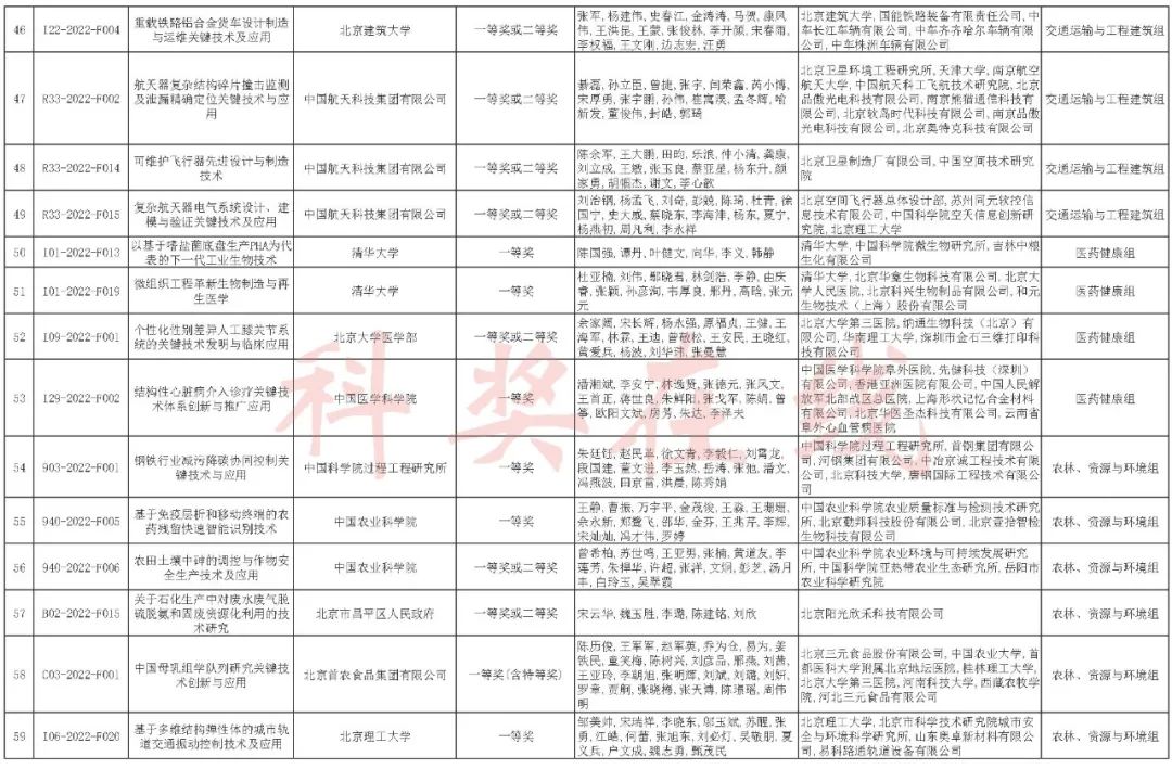 2022年度北京市科学技术奖提名情况