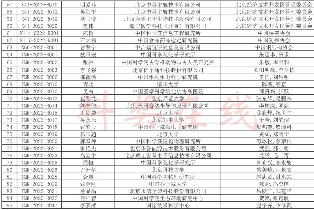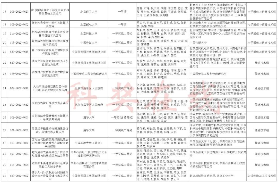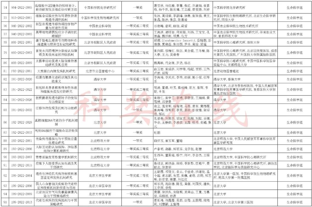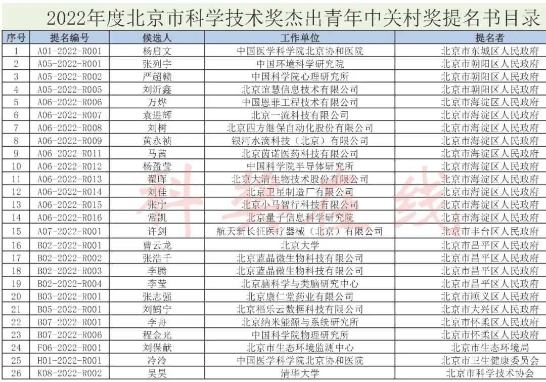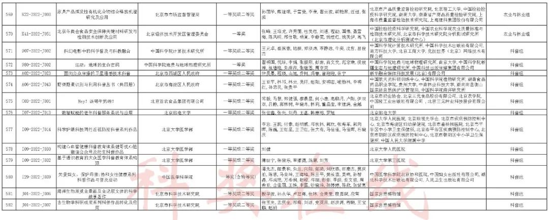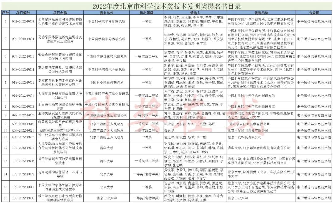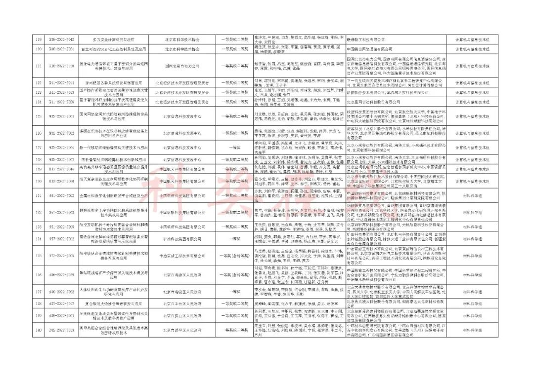 2022年度北京市科学技术奖提名情况