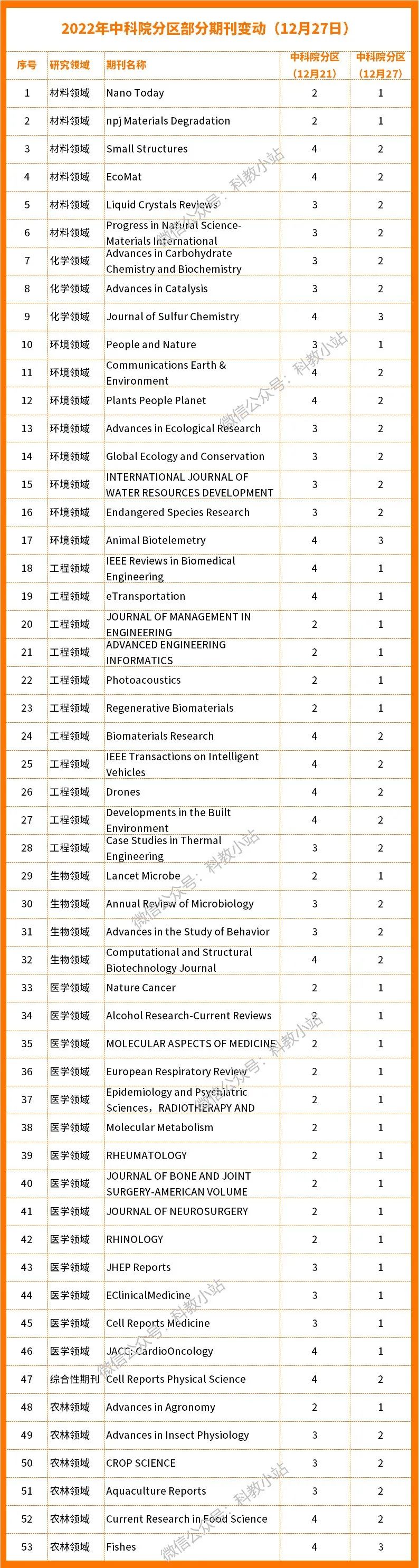 2022年12月底,万千人翘首以盼的2022年中科院分区表终于发布!12月26日,据多名网友反馈,很多期刊的2022分区突然发生了变化。本文一并介绍: