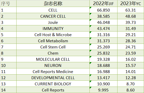Cell 及子刊,我们发现除了少数几个杂志影响因子变化幅度比较大(如Cancer Cell ),其他杂志影响因子比较稳定。