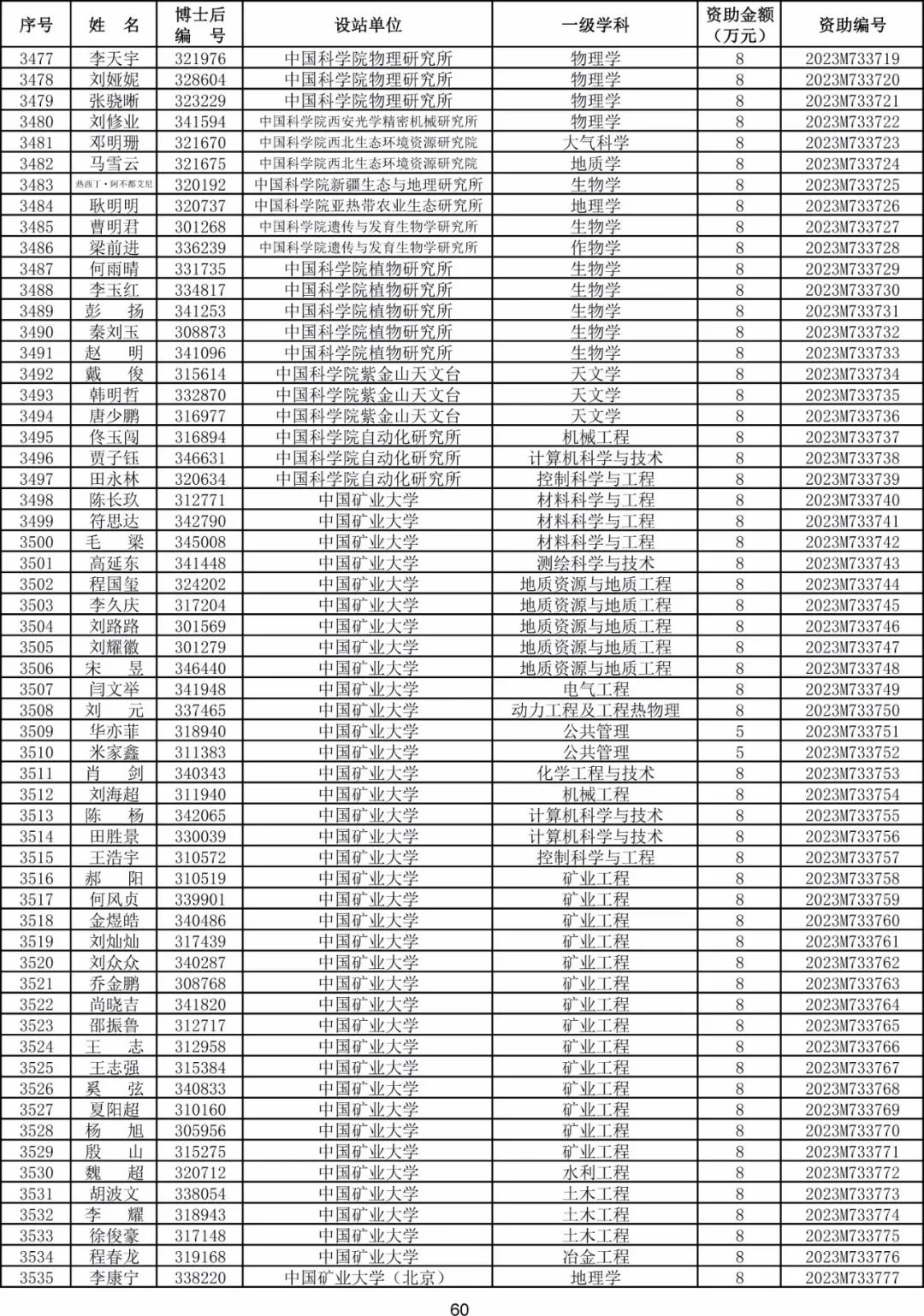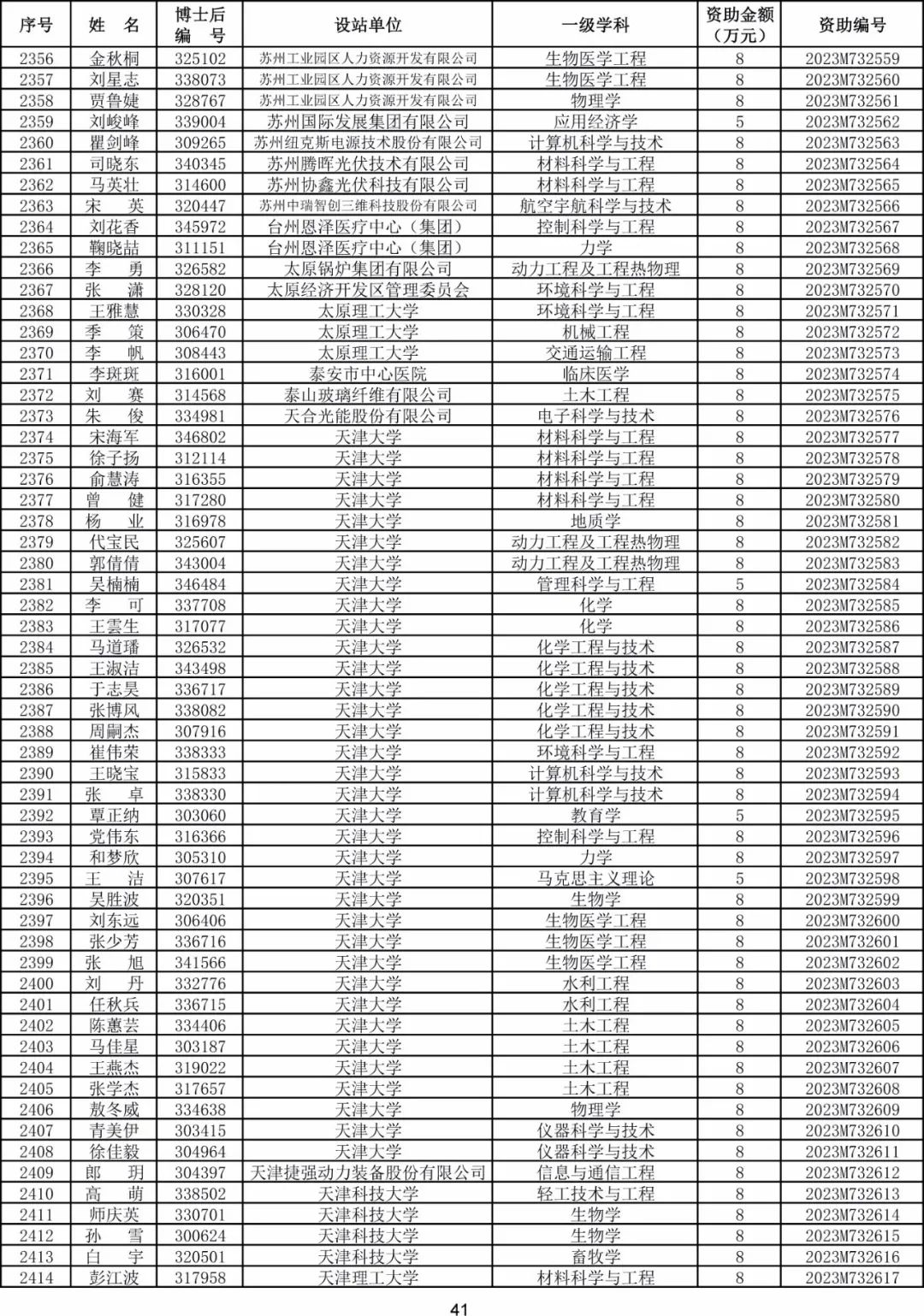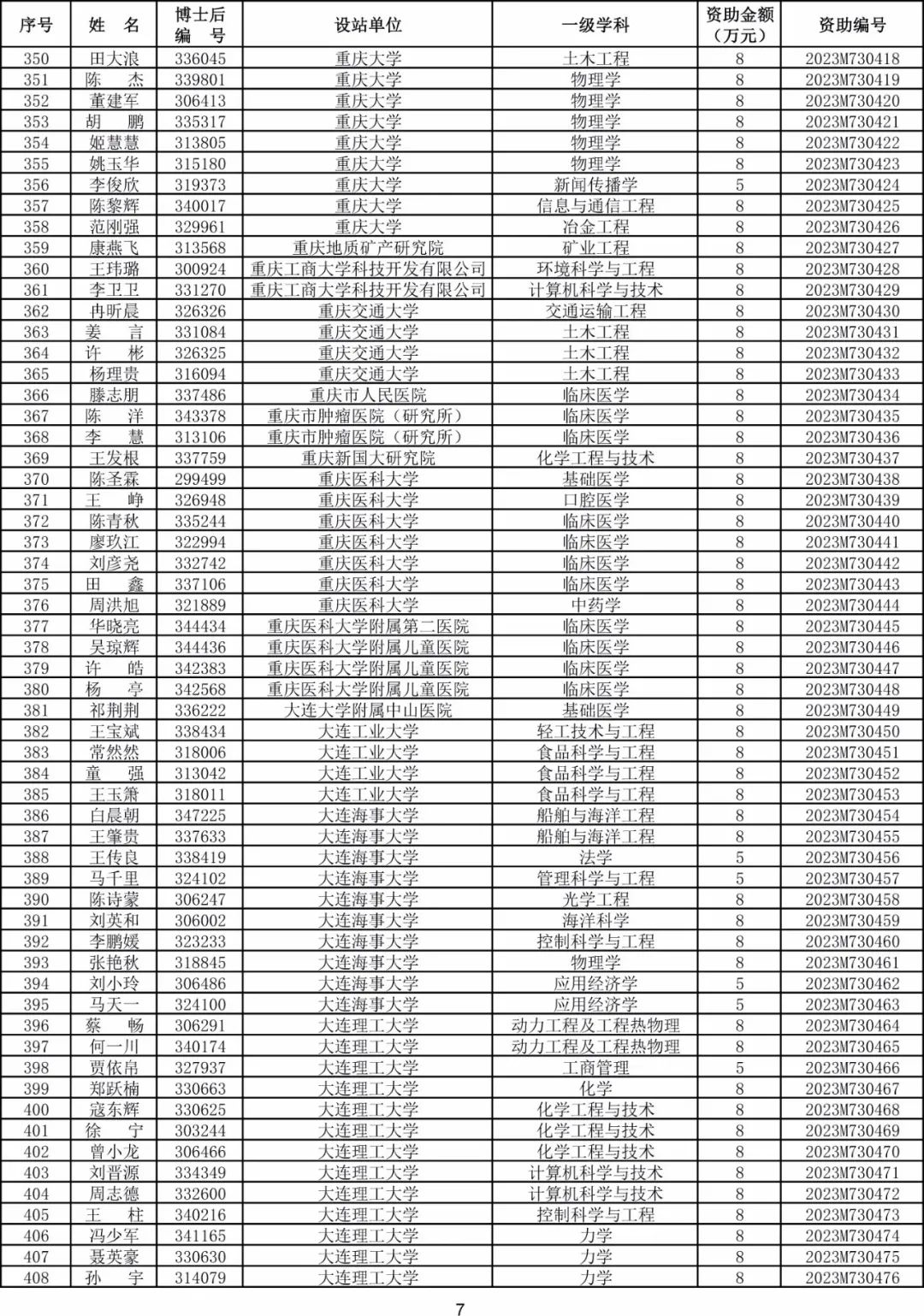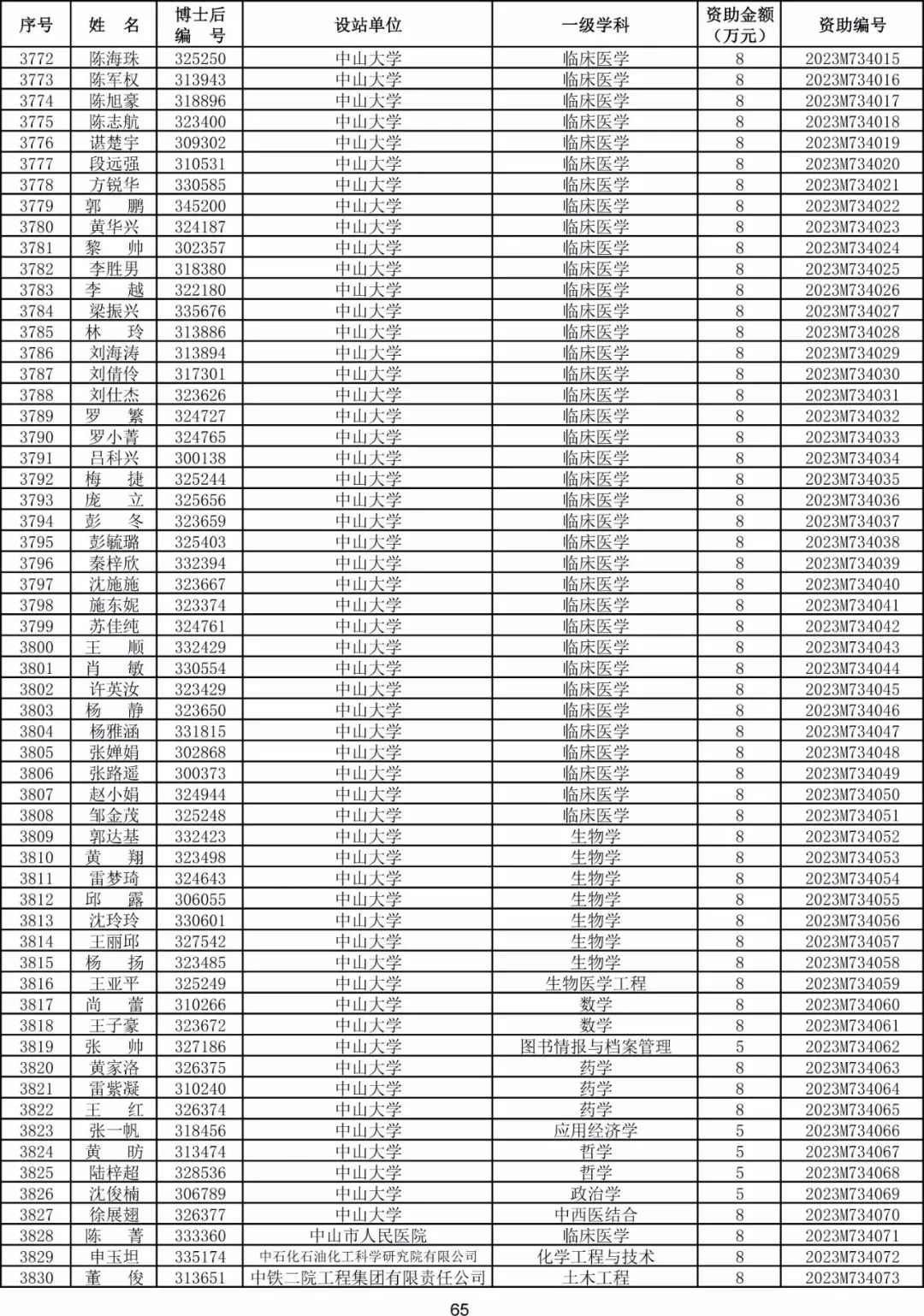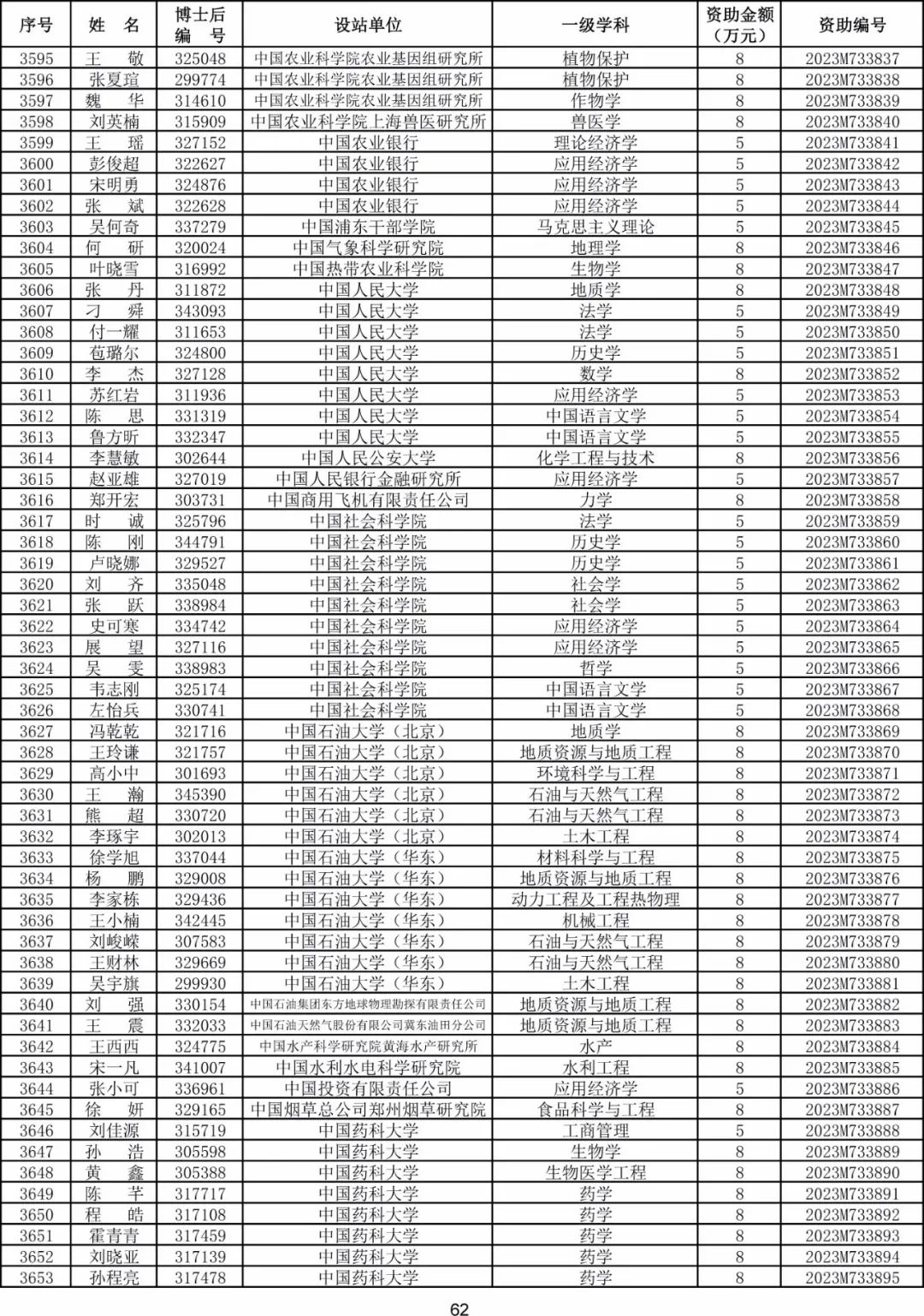根据《中国博士后科学基金资助规定》(中博基字〔2020〕7号),经专家评审和评审结果公示,决定对4003名博士后研究人员予以中国博士后科学基金第73批面上资助(军队、国防科工系统获资助人员不含,另行通知)。获资助人员名单详见附件。
