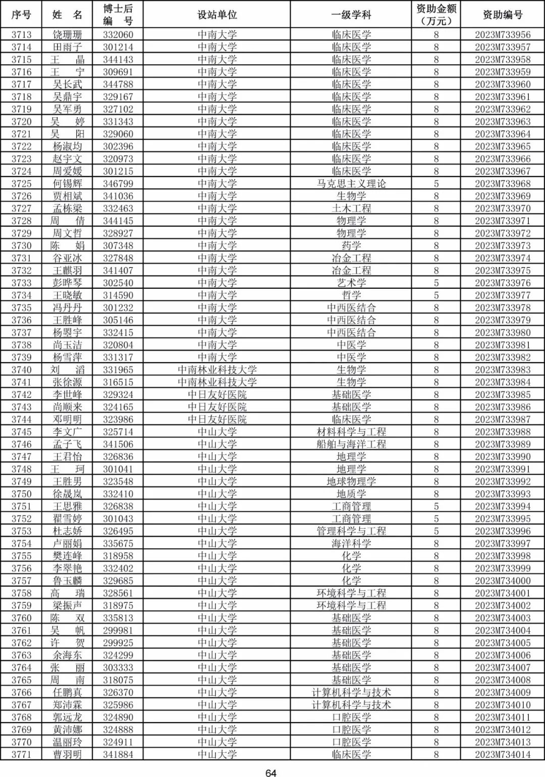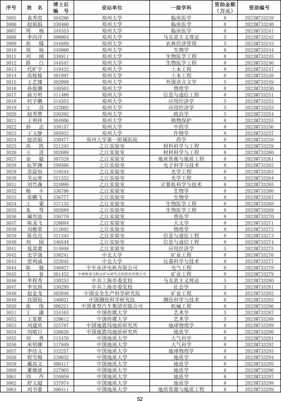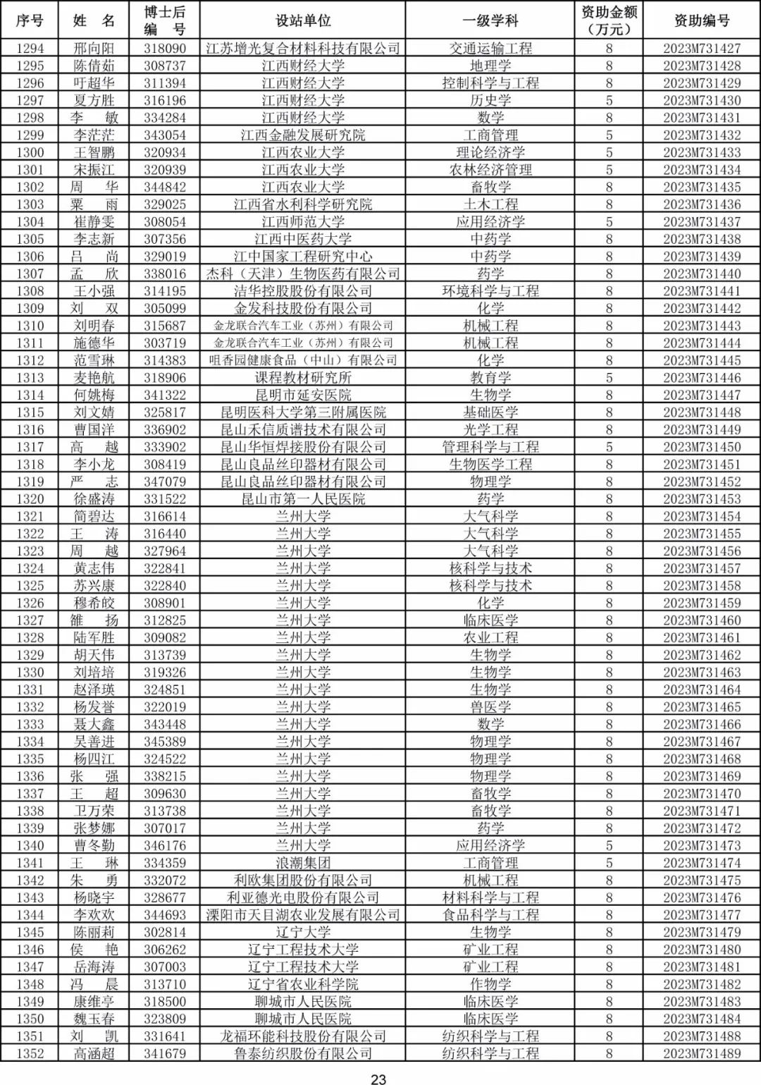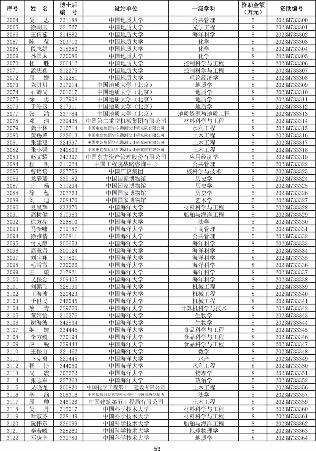 根据《中国博士后科学基金资助规定》(中博基字〔2020〕7号),经专家评审和评审结果公示,决定对4003名博士后研究人员予以中国博士后科学基金第73批面上资助(军队、国防科工系统获资助人员不含,另行通知)。获资助人员名单详见附件。