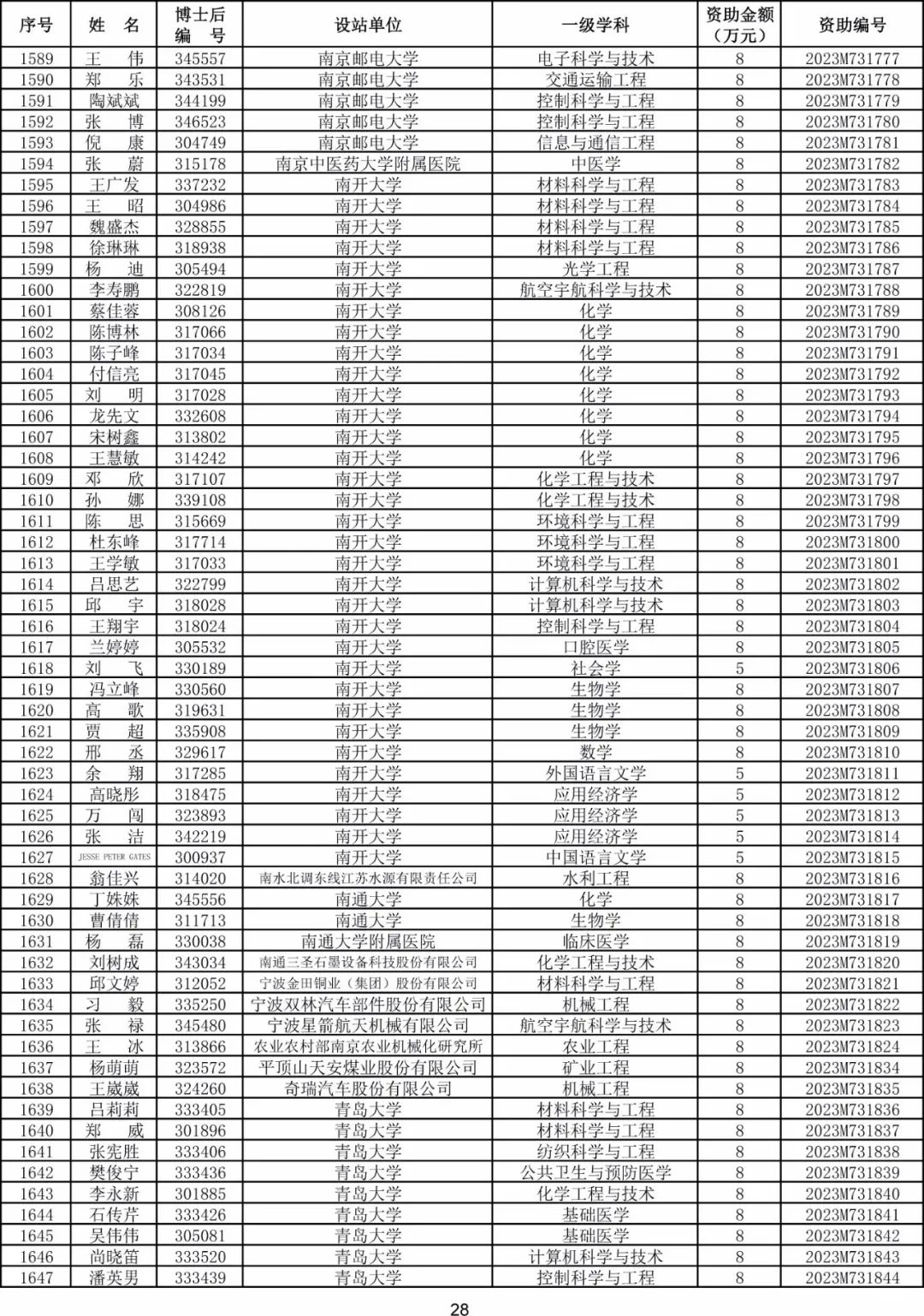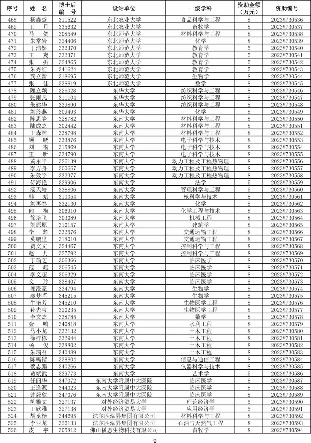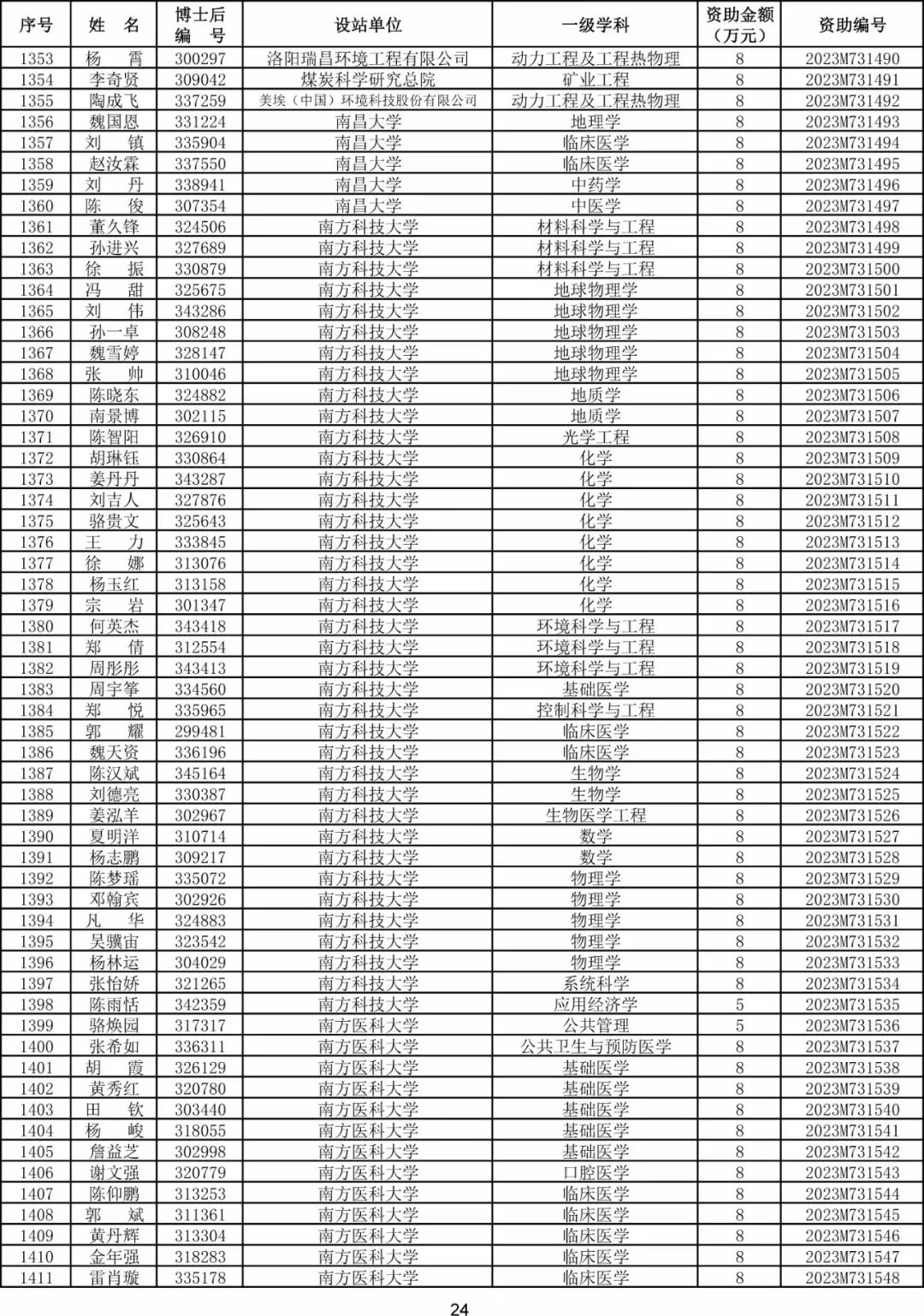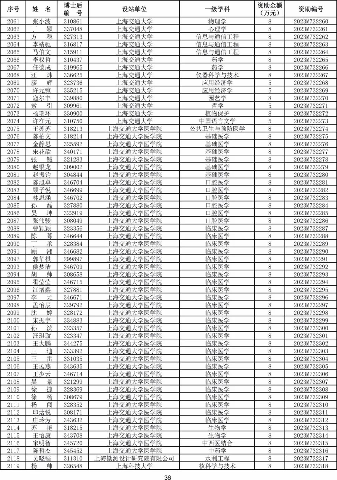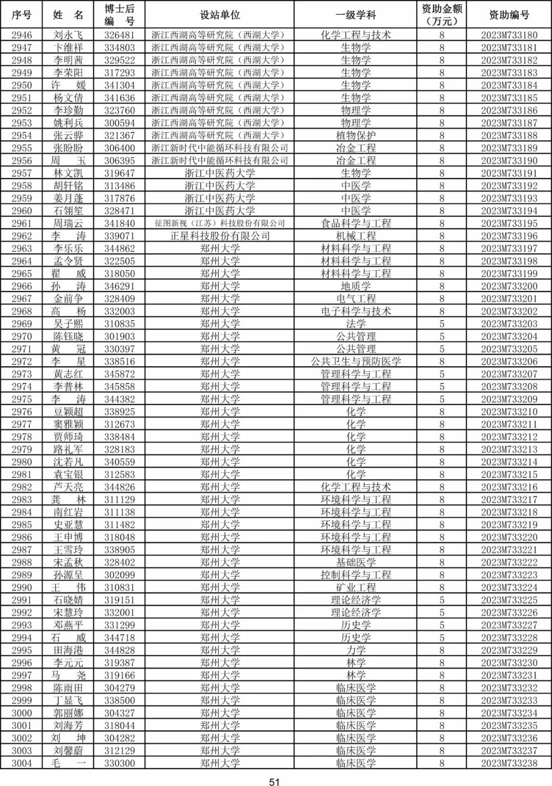 根据《中国博士后科学基金资助规定》(中博基字〔2020〕7号),经专家评审和评审结果公示,决定对4003名博士后研究人员予以中国博士后科学基金第73批面上资助(军队、国防科工系统获资助人员不含,另行通知)。获资助人员名单详见附件。