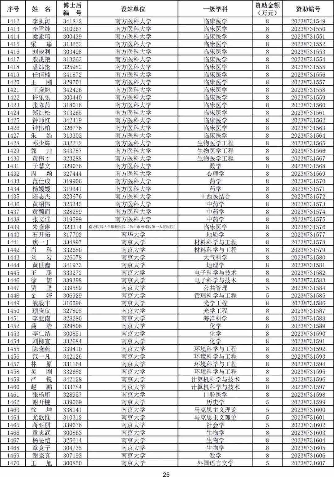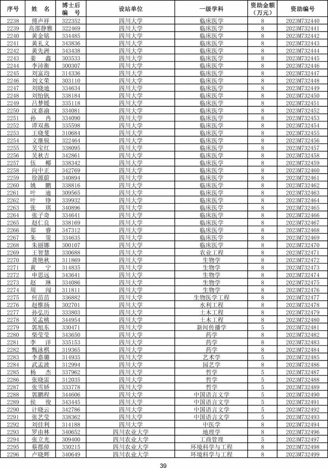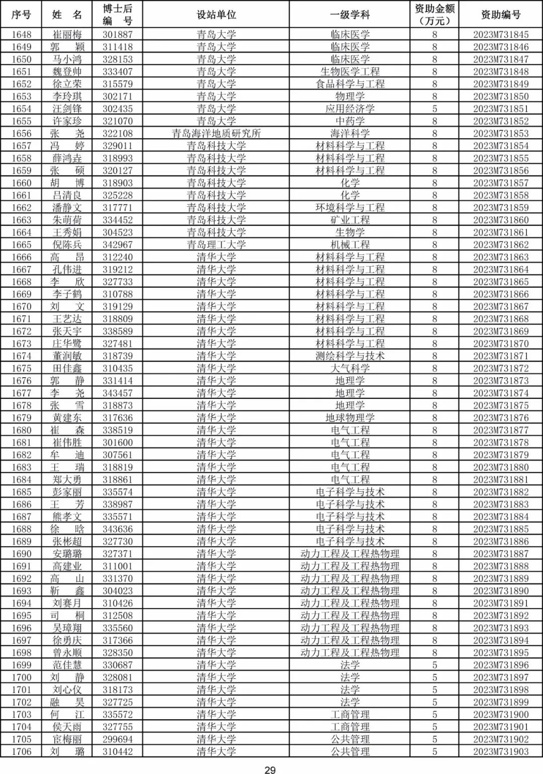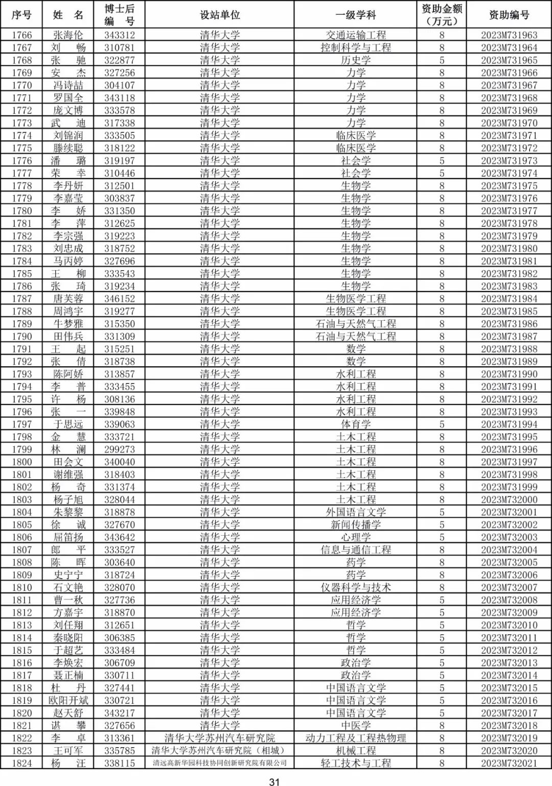 根据《中国博士后科学基金资助规定》(中博基字〔2020〕7号),经专家评审和评审结果公示,决定对4003名博士后研究人员予以中国博士后科学基金第73批面上资助(军队、国防科工系统获资助人员不含,另行通知)。获资助人员名单详见附件。