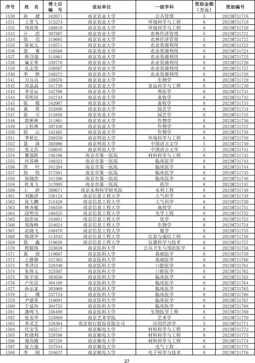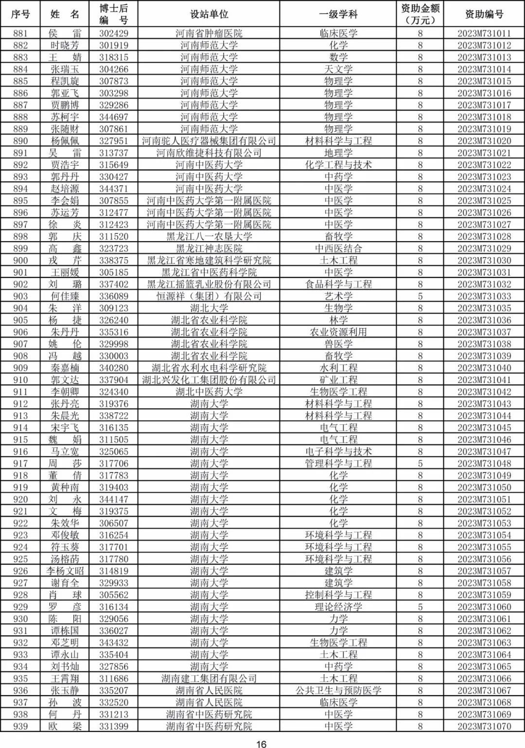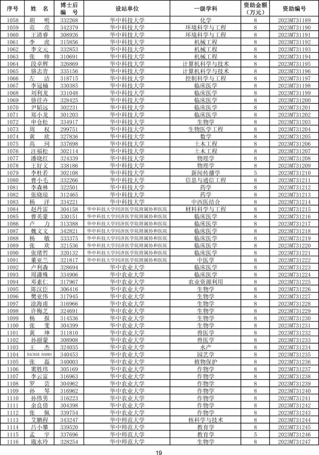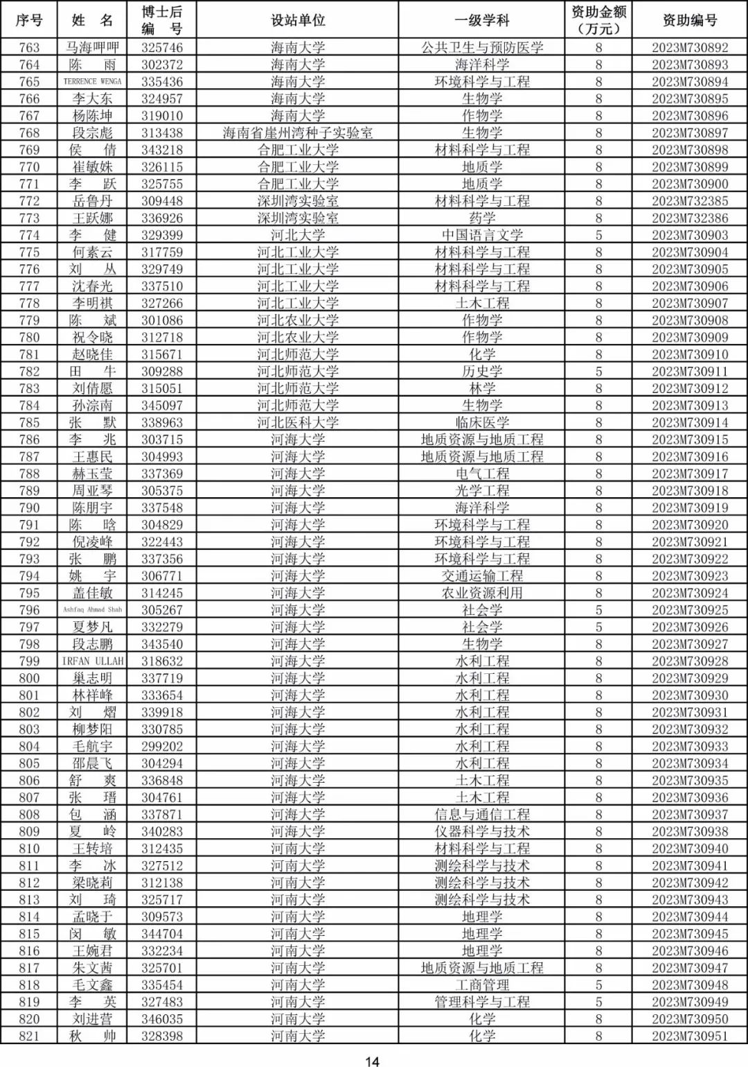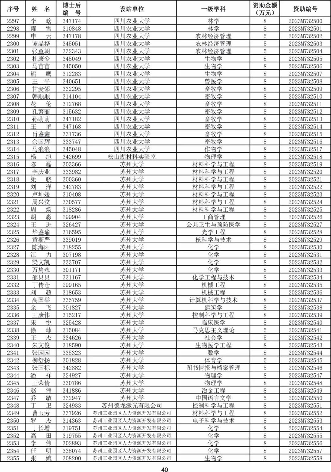 根据《中国博士后科学基金资助规定》(中博基字〔2020〕7号),经专家评审和评审结果公示,决定对4003名博士后研究人员予以中国博士后科学基金第73批面上资助(军队、国防科工系统获资助人员不含,另行通知)。获资助人员名单详见附件。