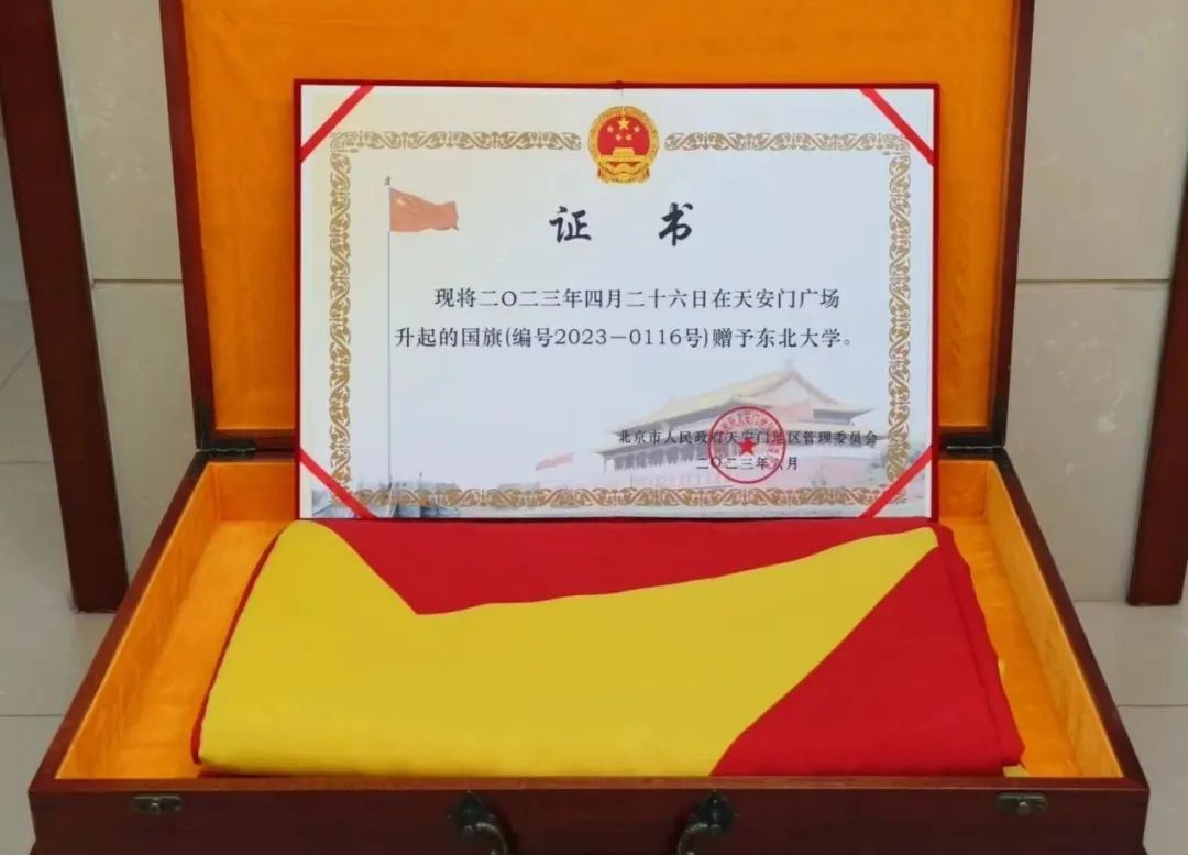 如今,这面红旗伴随着第一缕曙光,来到了东北大学,见证着始建于1923年4月26日的东大,百年如一的爱与信仰。