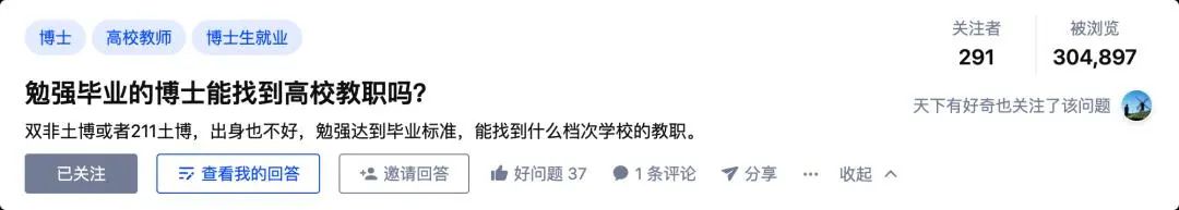 在知乎上,一位网友提问:“双非土博或者211土博,出身也不好,勉强达到毕业标准,能找到什么档次学校的教职。”51位网友根据自己的经历和经验作出了回答。