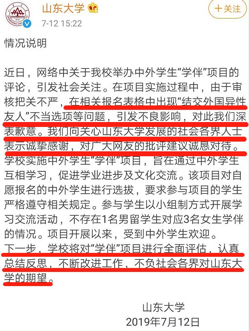 7月20日,顶端新闻记者从山东大学校长办公室相关工作人员处了解到,山东大学自始至终从未出现上述制度,未来也不会有关于留学生学伴的制度,“因此还请大家不信谣,不传谣。”