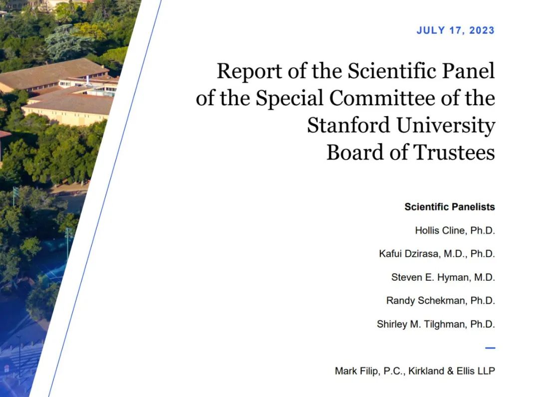 斯坦福大学的报告在本周三上午以 95 页文件的形式发布,由前美国副司法部长 Mark Filip 撰写,他与斯坦福大学董事会的一个特别委员会签约,负责审查去年 11 月每日报告中首次发现的指控。Filip 挑选了几位知名科学家,包括诺贝尔奖获得者兰迪·谢克曼、普林斯顿大学前校长雪莉·蒂尔曼、哈佛大学前教务长史蒂夫·海曼和另外两名美国国家科学院院士。