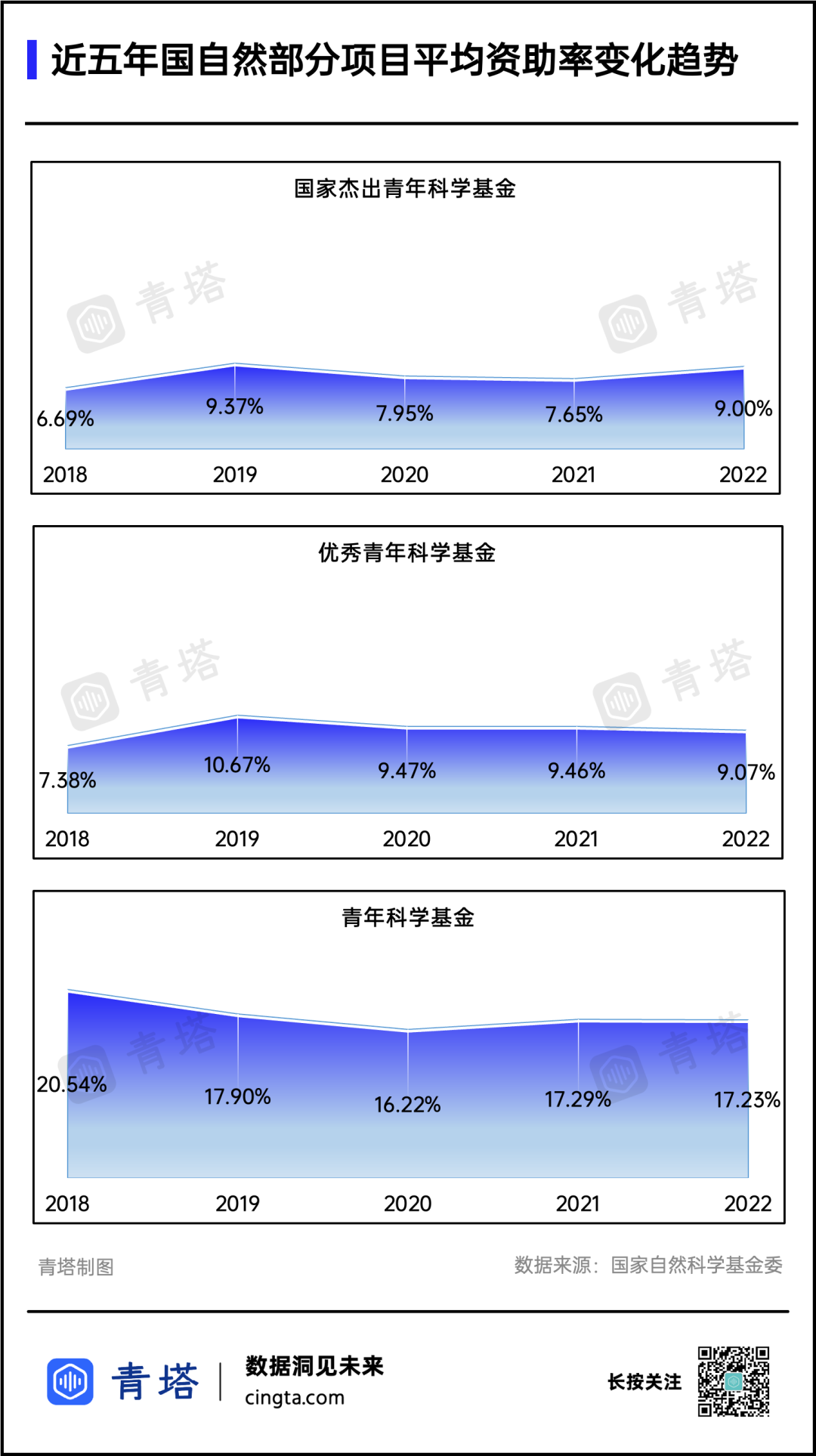 2022年,国家自然科学基金委员会计划局刊文提出:建议适时扩大青年基金、优青基金、杰青基金资助规模,加大青年人才培养力度,蓄积创新基础。