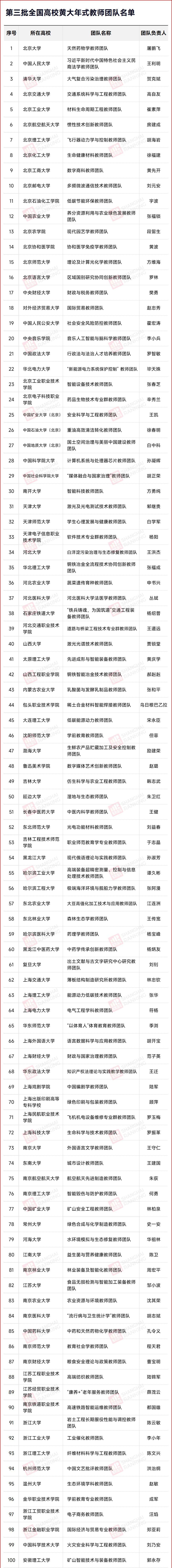 8月31日,教育部发布第三批全国高校黄大年式教师团队创建示范活动入围名单,共有199所高校入选。每所高校各有一个团队入选,团队负责人均为来自各个领域的领军学者。