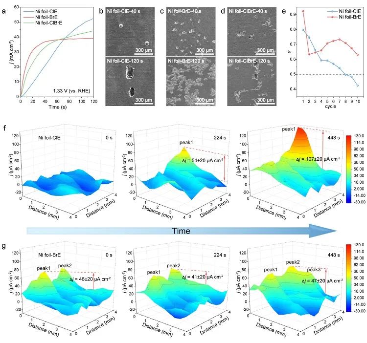 图4. 镍基底在含Cl-和含Br-溶液中的腐蚀过程。图片来源:Nat. Commun.