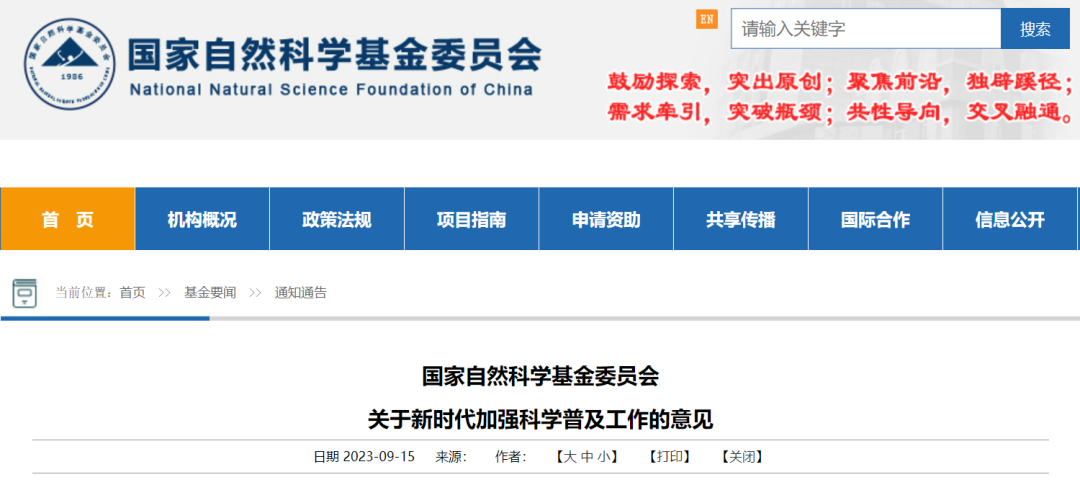 国家自然科学基金委员会关于新时代加强科学普及工作的意见