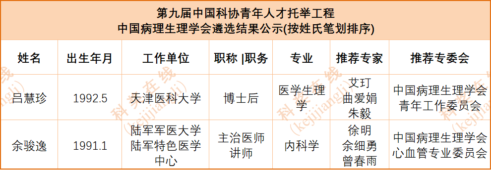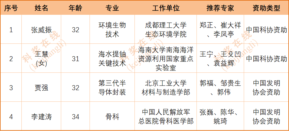 中国发明协会第九届中国科协青年人才托举工程项目被托举人遴选结果公示