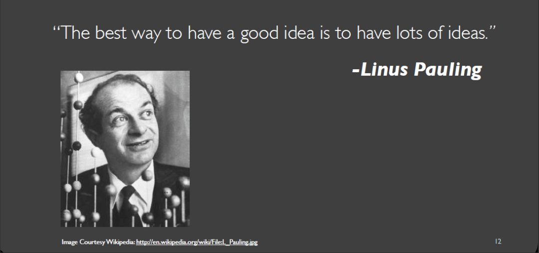 你是否曾经感叹过,要是能拥有一个像美国化学家生物学家Linus Pauling所说的“产生大量想法”的技巧就好了?遗憾的是,现在有不少强势的导师往往直接为学生指定了非常具体的课题,这样做的直接后果就是剥夺了学生思考和探索的机会。也许有些学生觉得这样也不错啊,一上来就有课题可以做,做出成果就可以发表文章,看起来挺高效的。但是,如果你接到的第二个、第三个、第四个课题一直都是导师直接安排的,你是否会开始怀疑自己是否拥有独立想出好主意的真实能力呢?每个人都有无限的创新潜能,关键是要找到正确的打开方式。你的思考能力和想法也是非常重要的。只有通过不断尝试、不断失败、不断总结经验,才能找到属于自己的课题和研究方向。