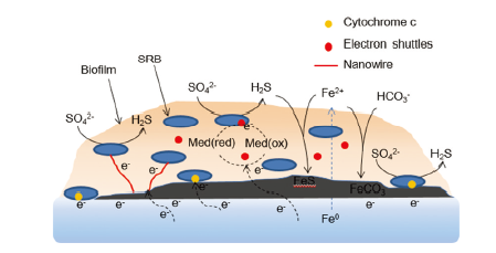 硫酸盐还原菌(SRB):SRB还原生成的硫化氢会腐蚀钢铁,形成硫化亚铁的沉积物,又会引起垢下氧的浓差电池腐蚀,还会形成电偶腐蚀。