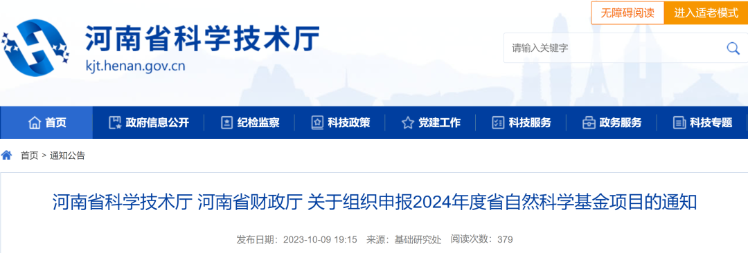 2024年度河南省自然科学基金项目开始申报!