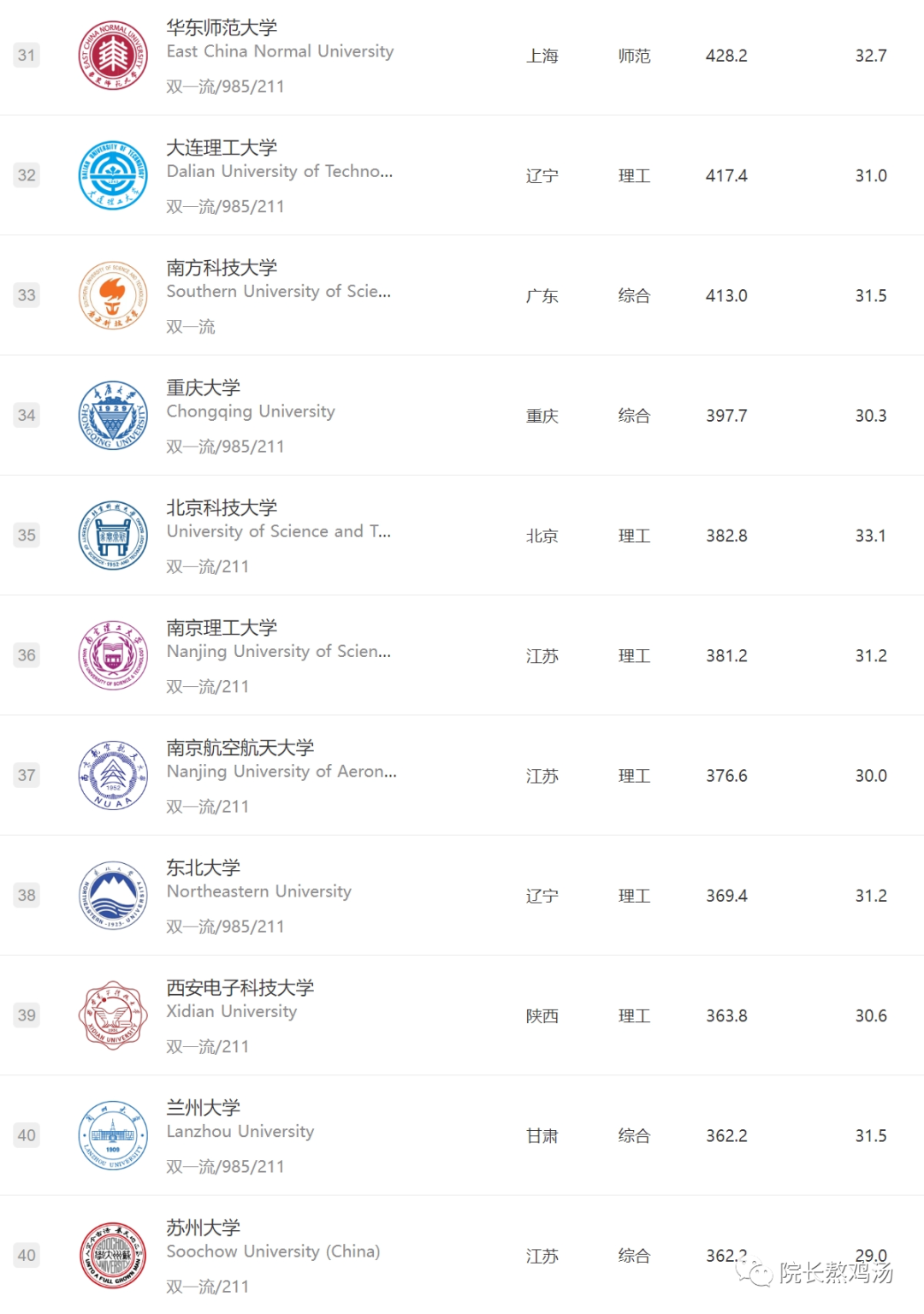 然后就是著名的华五:浙江大学、上海交大、复旦、南京大学、中科大