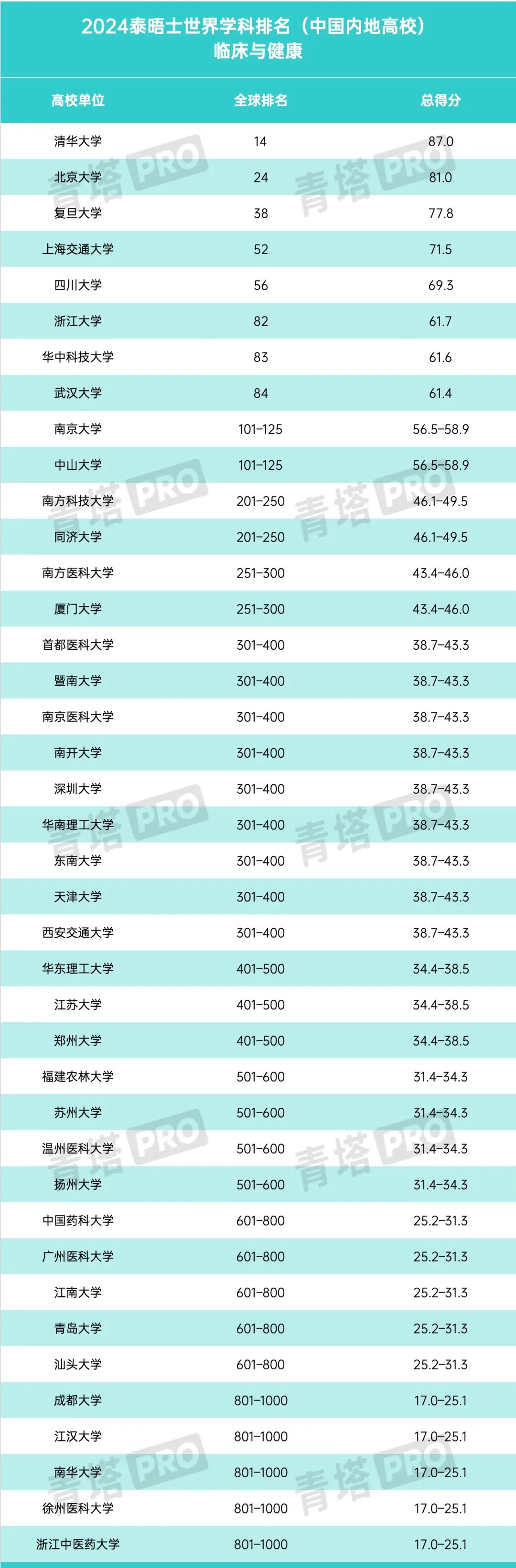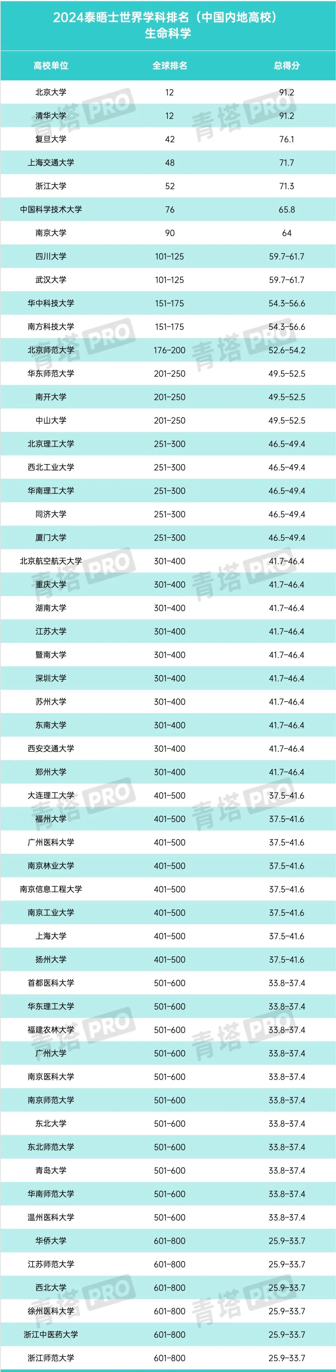 10 月 26 日,2024 年泰晤士高等教育世界学科排名正式发布。