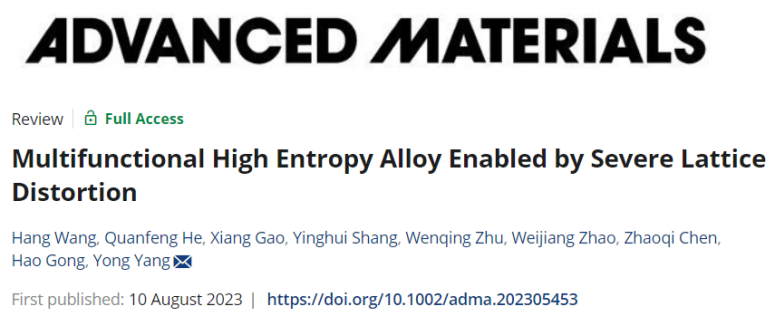 4、香港城市大学Adv. Mater.综述:利用晶格畸变实现高熵合金的多功能性