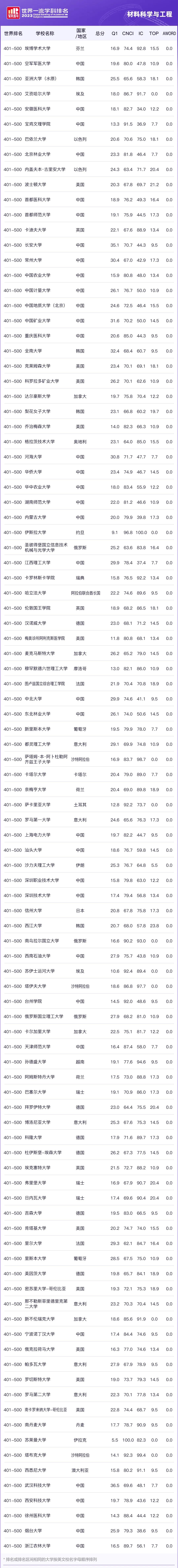 最新:材料学科世界排名发布!