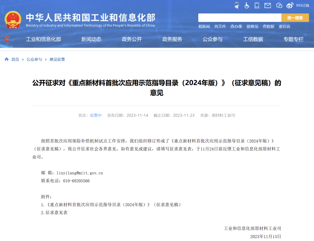 【DT新材料】获悉,近日,工业和信息化部网站发布《重点新材料首批次应用示范指导目录(2024年版)》(征求意见稿)。