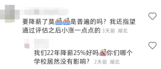 还有的高校老师自爆,降得比较多 ——「2022 年降薪 25%!」「降了 4000 多。」