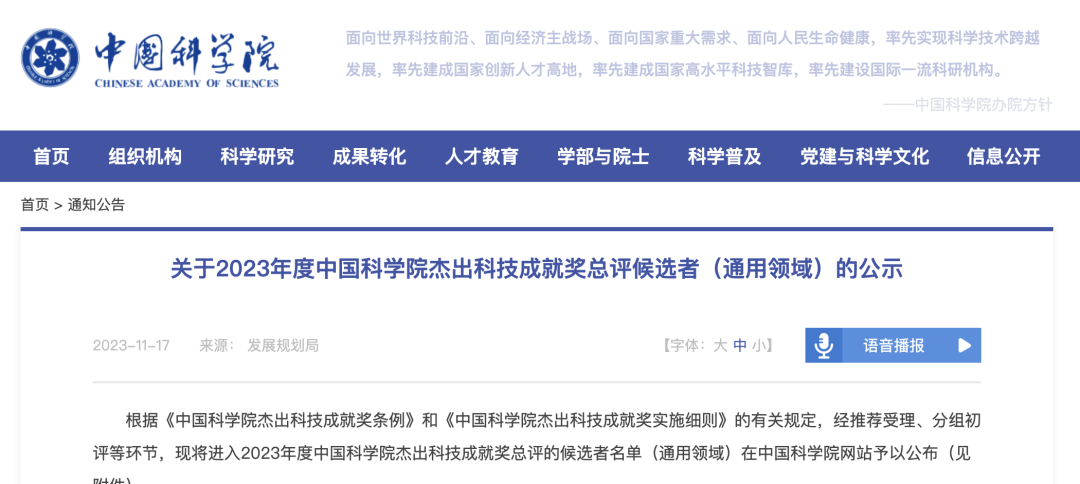 中国科学院杰出科技成就奖授予院属单位在近五年内完成或显示影响的重大成果的个人或集体,每两年评选一次,每次授奖总数不超过10个,其中每个获奖集体的突出贡献者不超过3人。获奖者由中国科学院院长签署奖励证书并颁发奖章或奖杯。
