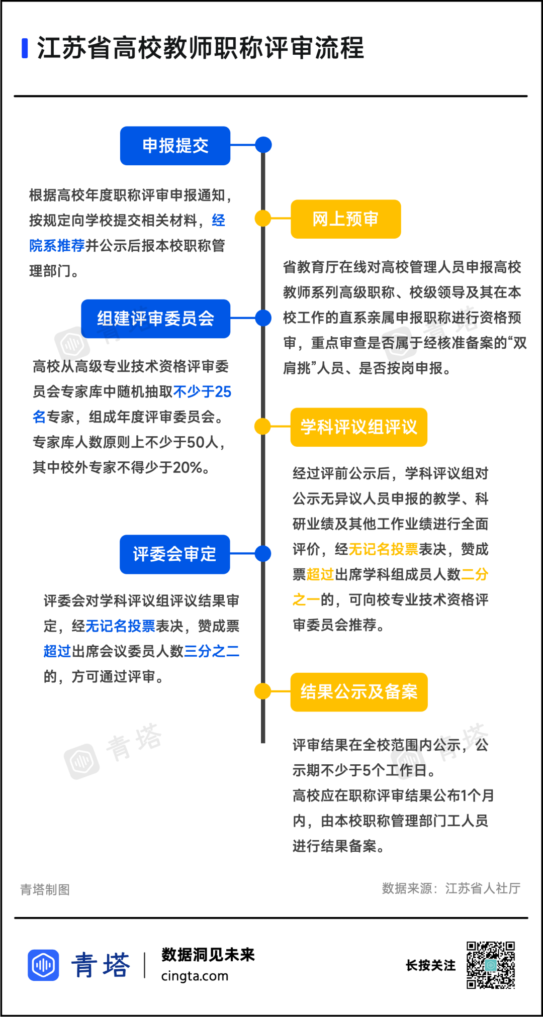 根据江苏省人社厅发布的《全省高等学校教师职称评审工作指南》介绍,经院系推荐上报学校和省教育厅,先经学科评议组无记名投票表决后,再由学校专业技术资格评审委员会无记名投票表决。
