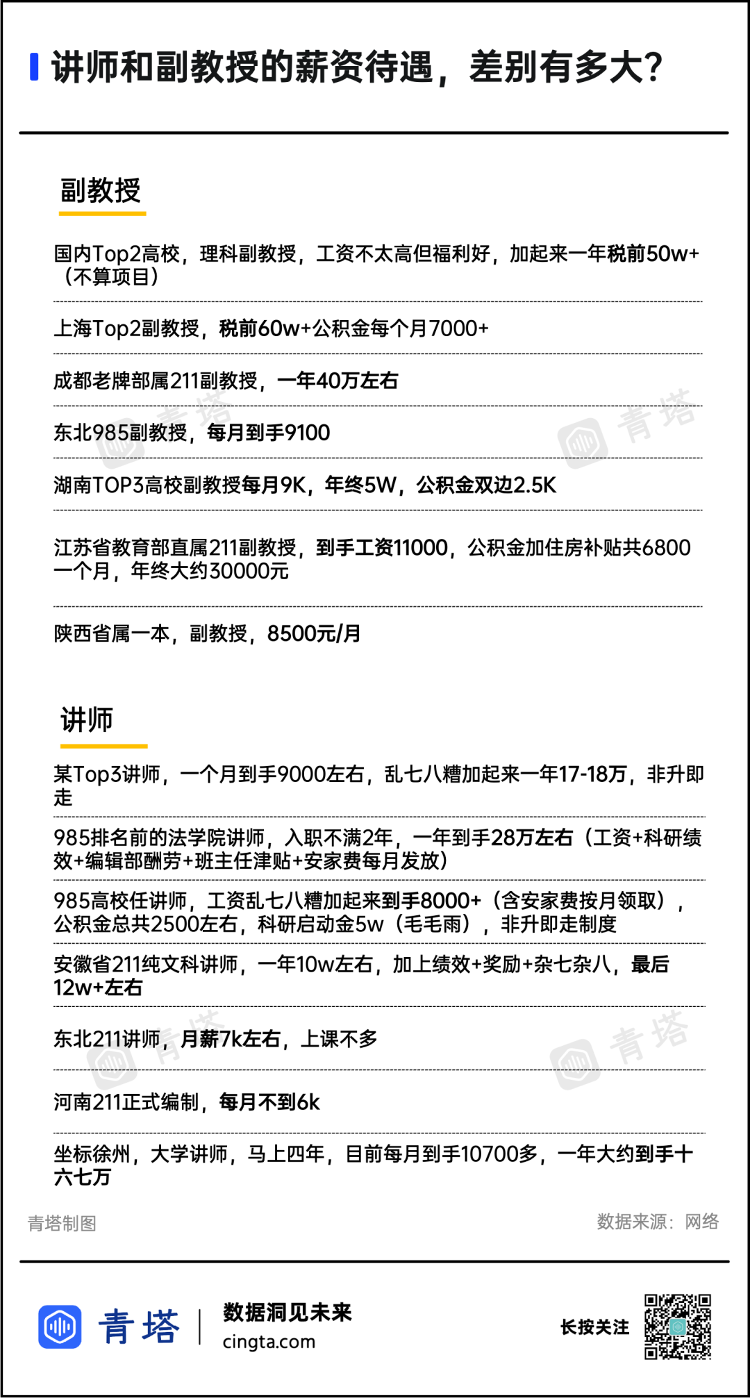 同时,职称也与薪资待遇挂钩。职称越高,薪资待遇自然也高。已经成家立业的高校教师们,谁不想拥有更好的生活水平呢?