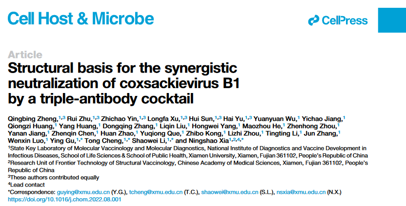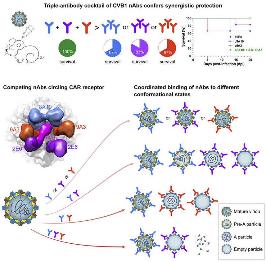 Cell Host & Microbe:三抗体鸡尾酒协同中和柯萨奇病毒B1的结构基础
