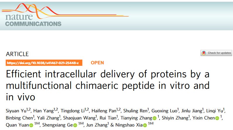 Nat. Commun.:通过多功能嵌合肽有效地在细胞内递送蛋白质