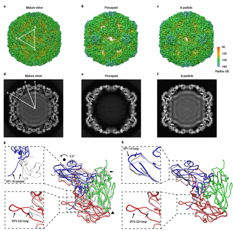 肠道病毒D68(EV-D68)在其整个生命周期中会经历从成熟、细胞进入中间体(A颗粒)和空形式之间的结构转换。因此,各种形式和抗体结合衣壳的结构信息将有助于开发针对EV-D68感染的有效疫苗和治疗方法,从而有望在全球范围内改善儿童呼吸系统和麻痹性疾病状况。